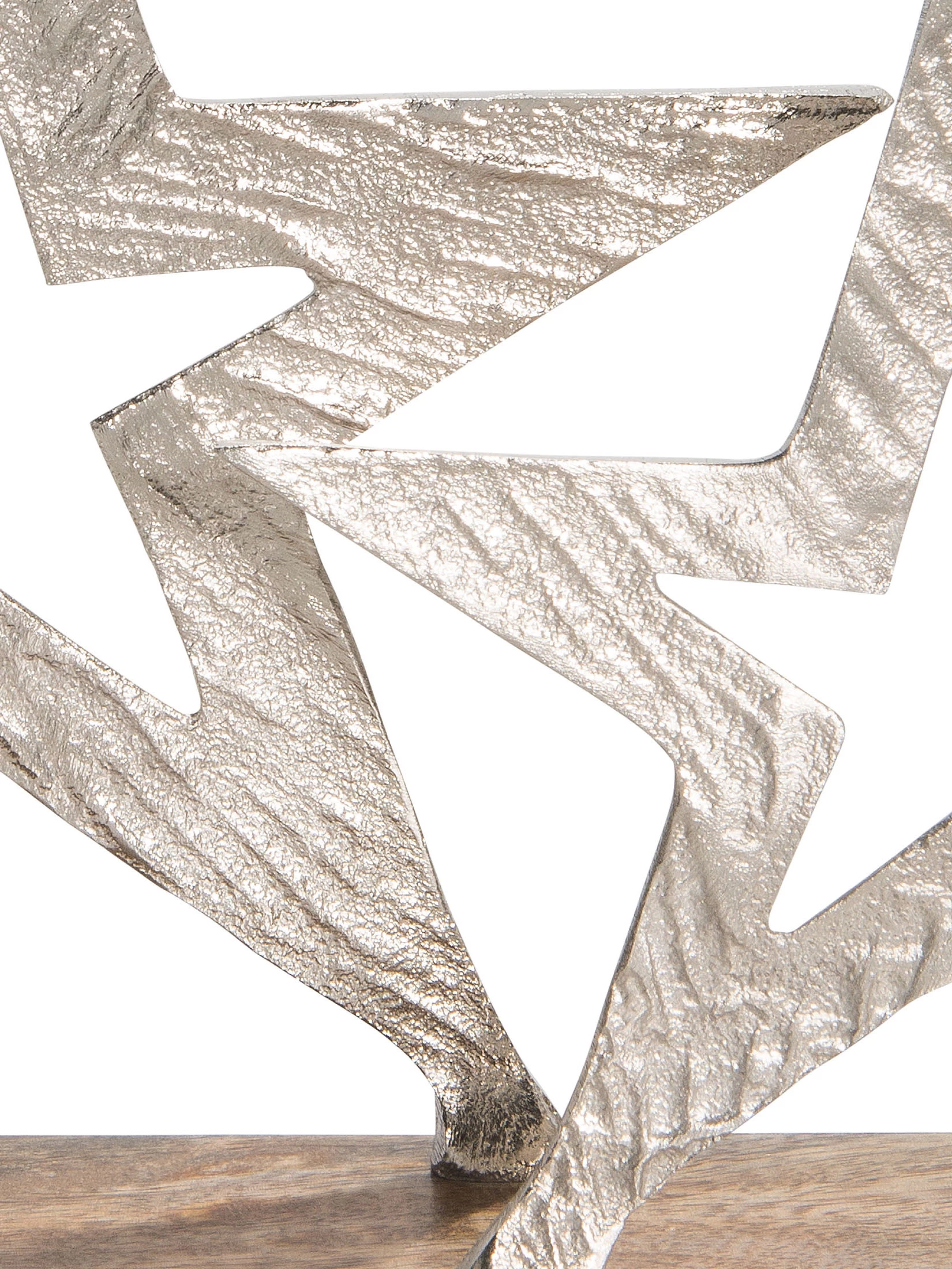 Weihnachtlicher Aufsteller mit Sternen aus Aluminium und Halter aus Holz.