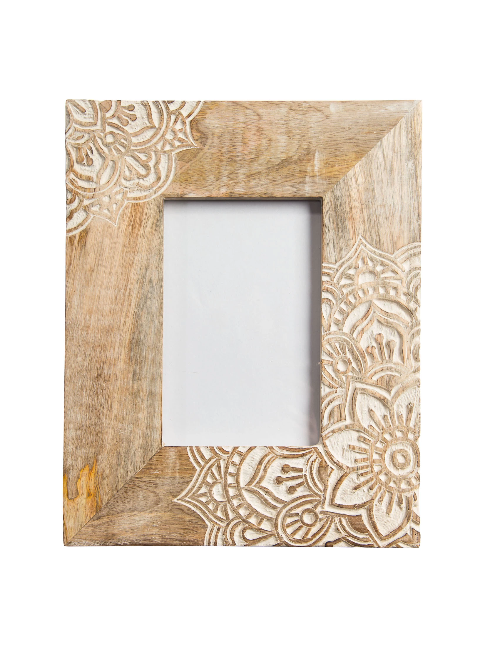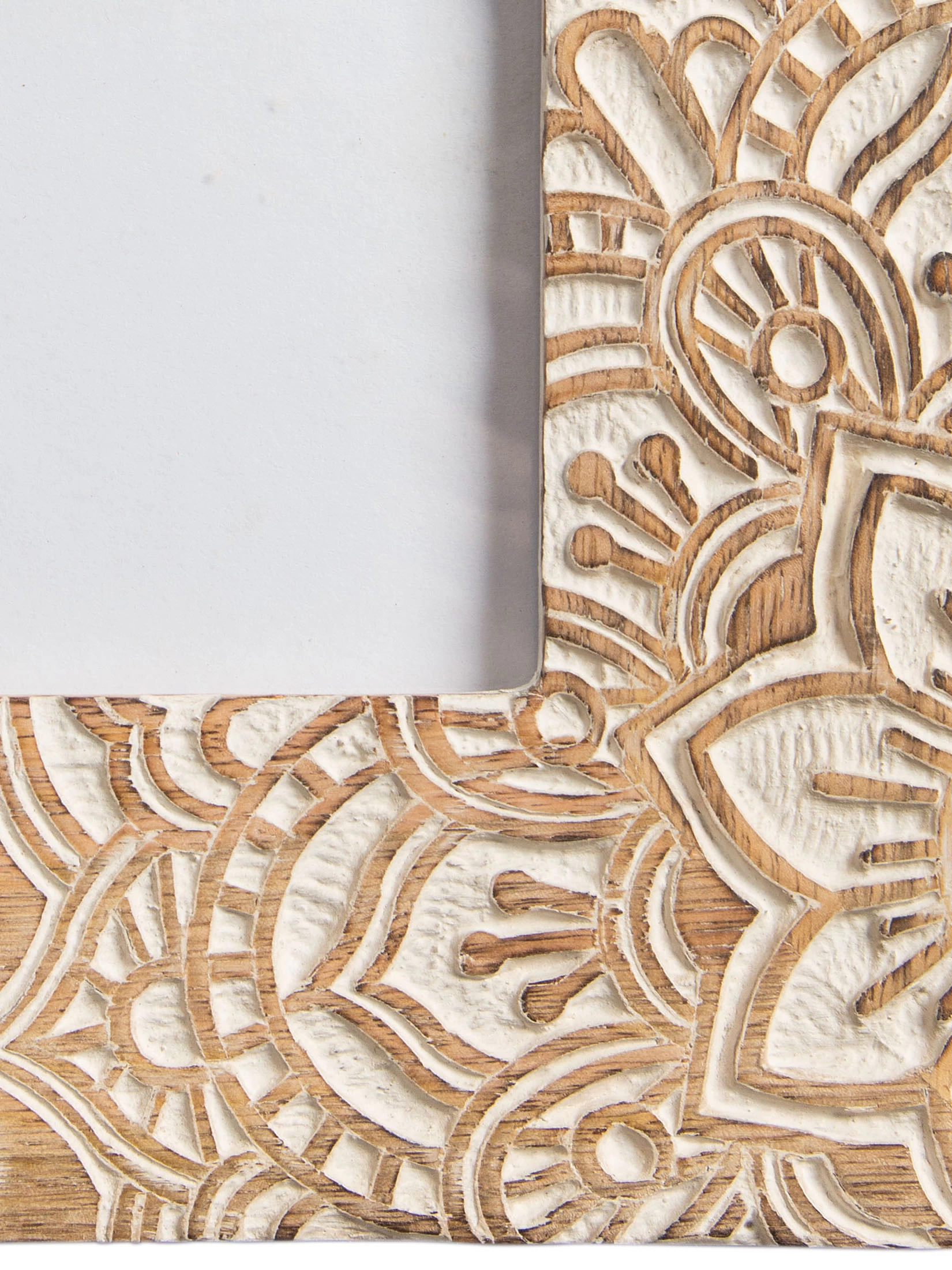 Handgeschnitzte Motive. Echtholzrahmen.