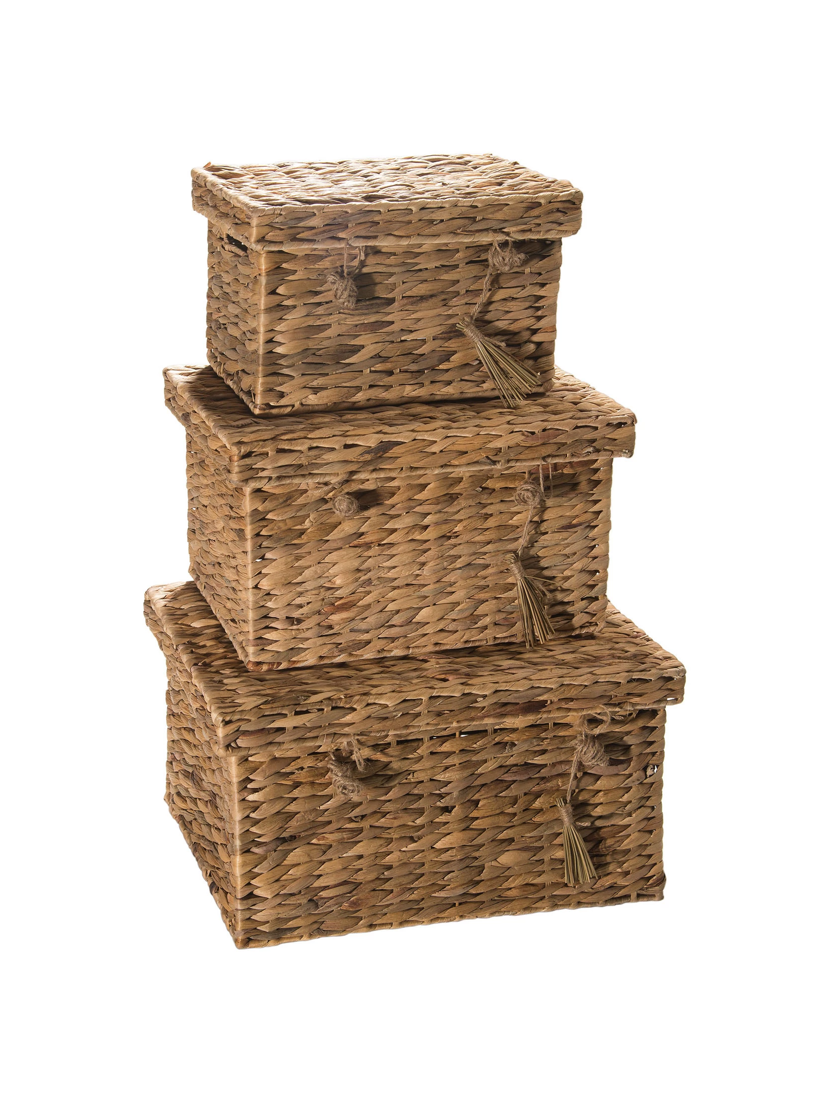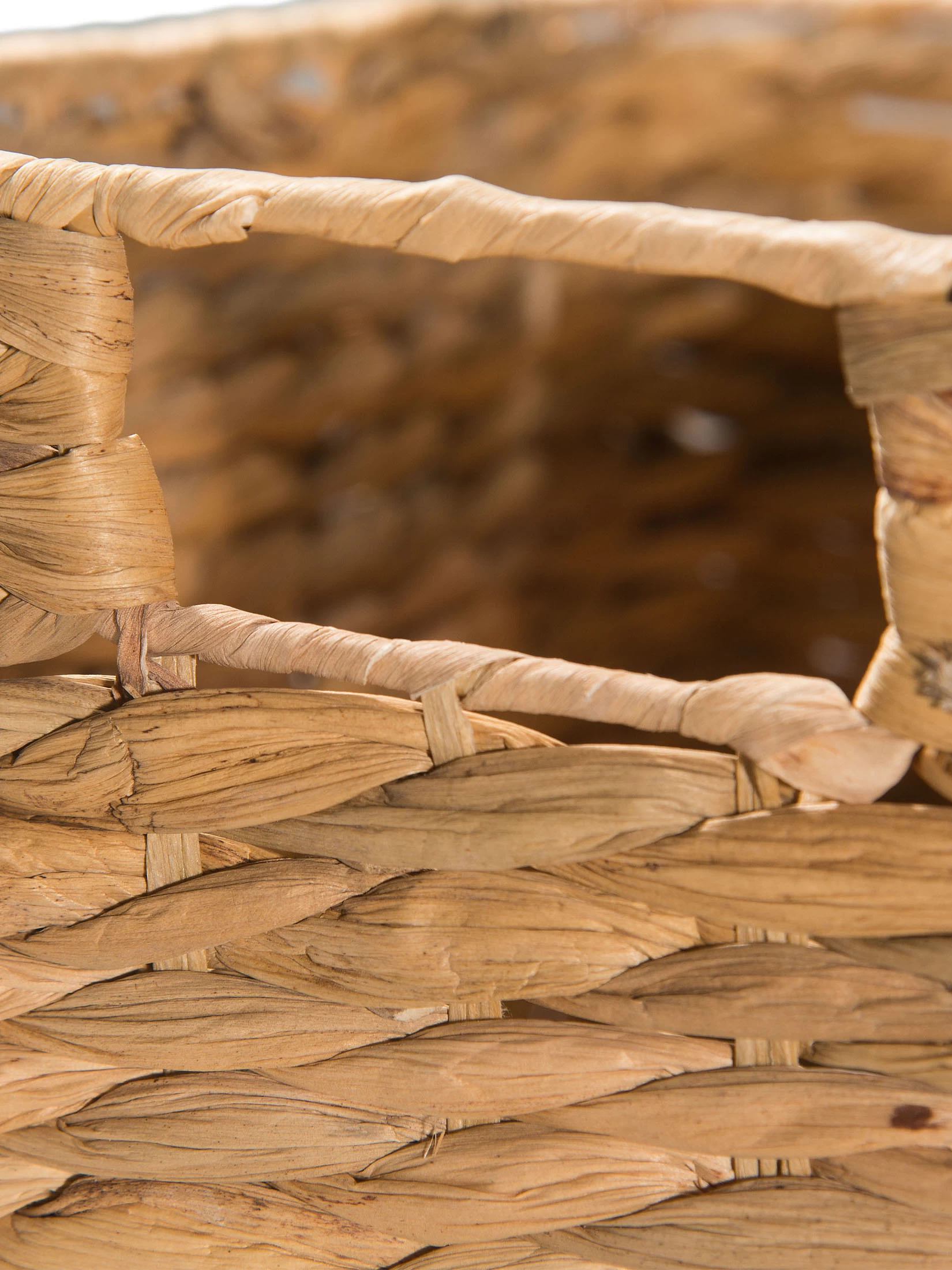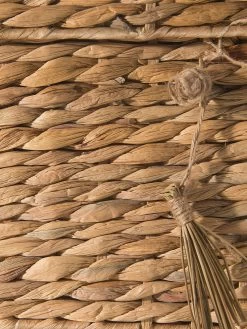 Praktisch, natĂĽrlich und nachhaltig. Handgefertigt aus Wasserhyazinthe. Handgriffe stabilisiert mit Metallkante.