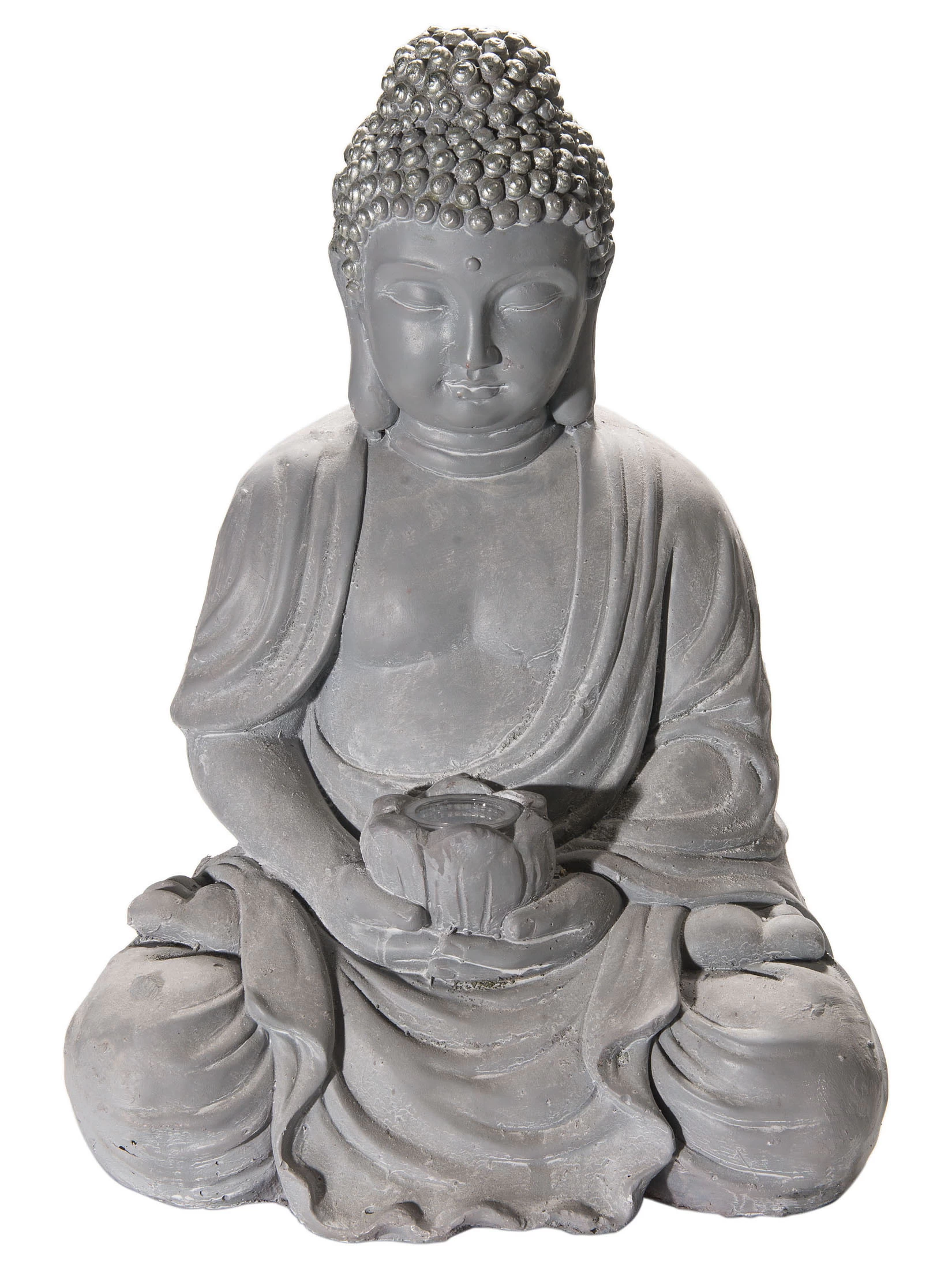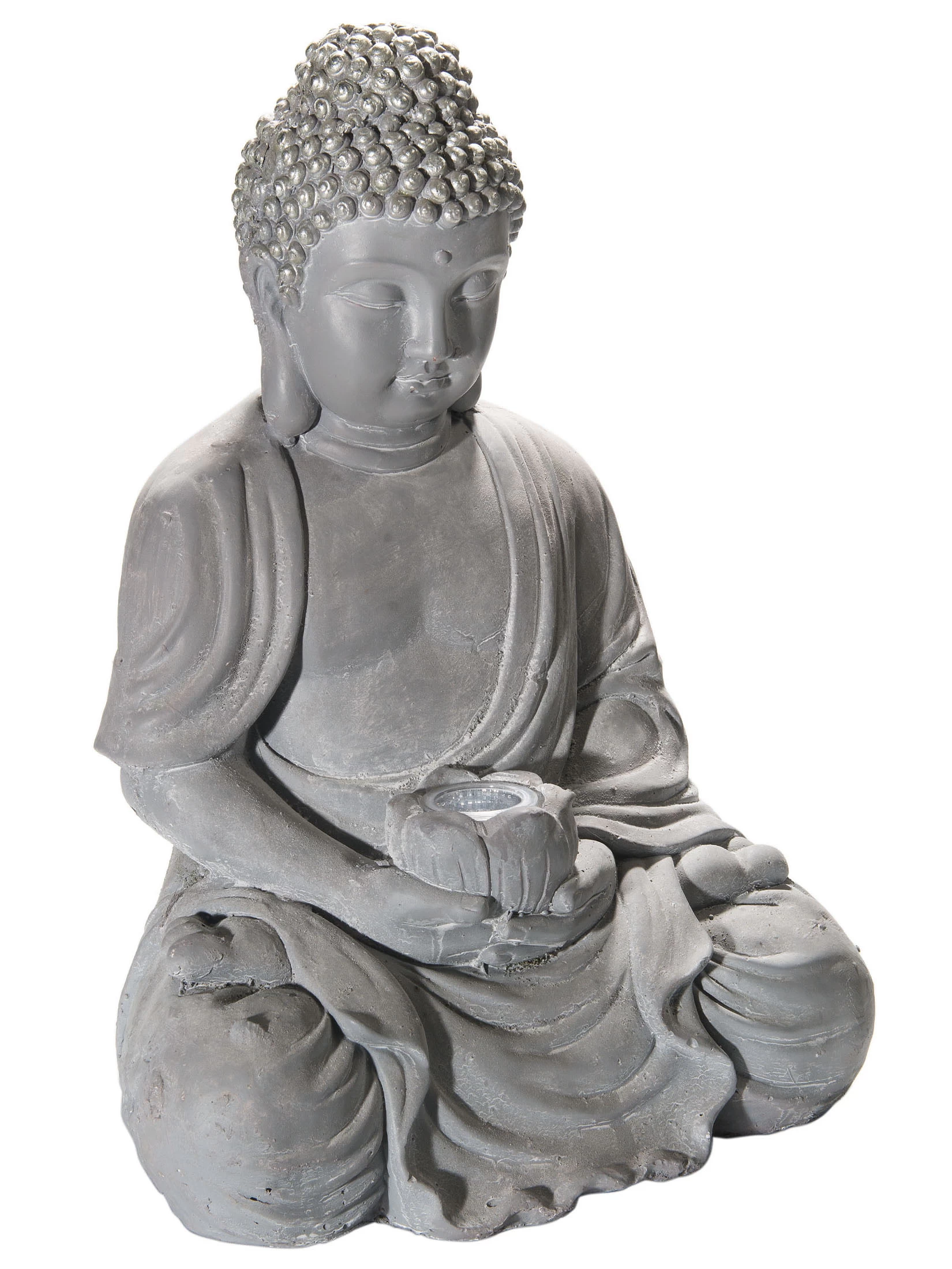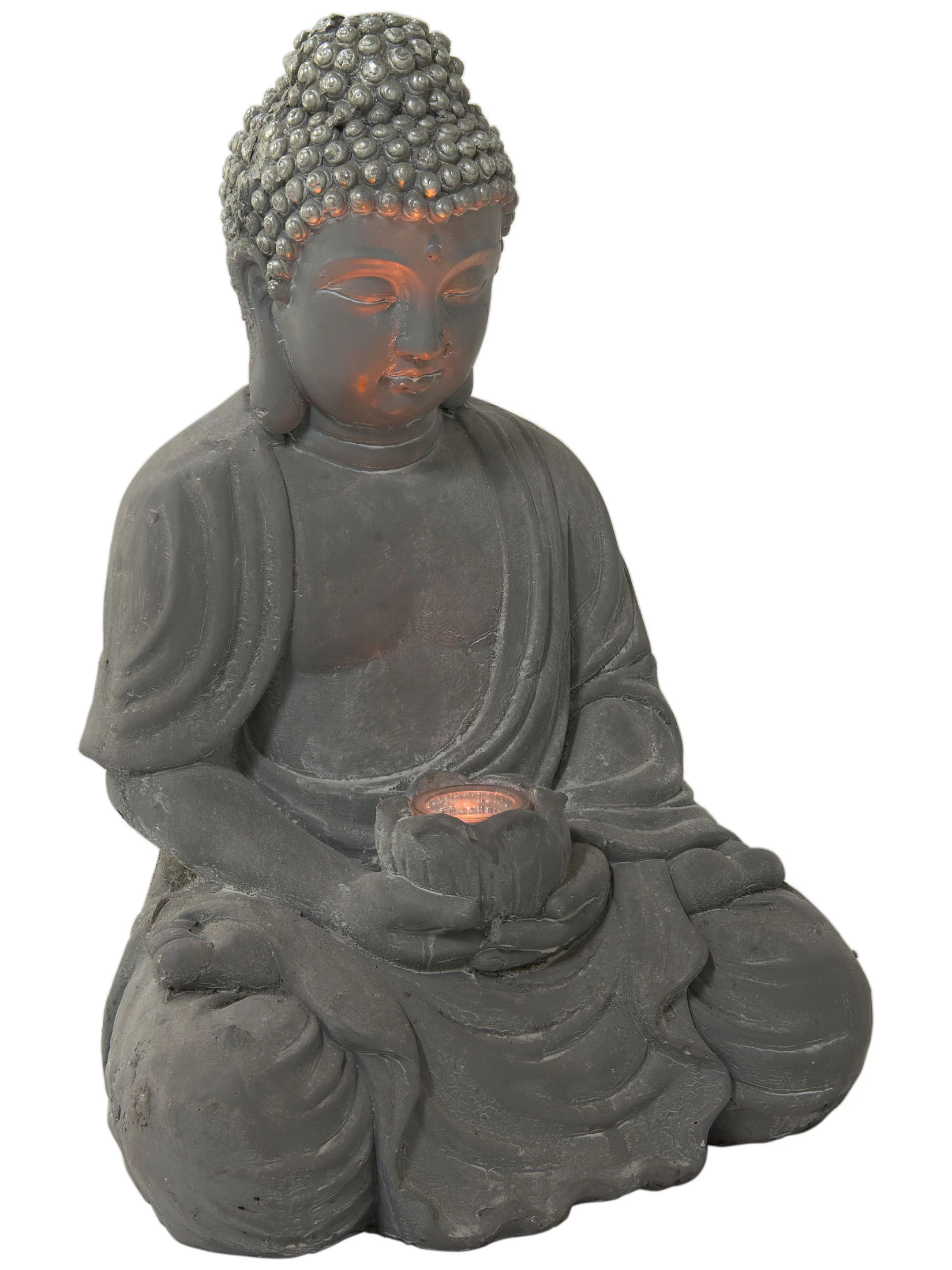 Buddha-Figur aus Magnesia perfekt fĂĽr den Outdoorbereich. Inkl. LED Solarbeleuchtung.