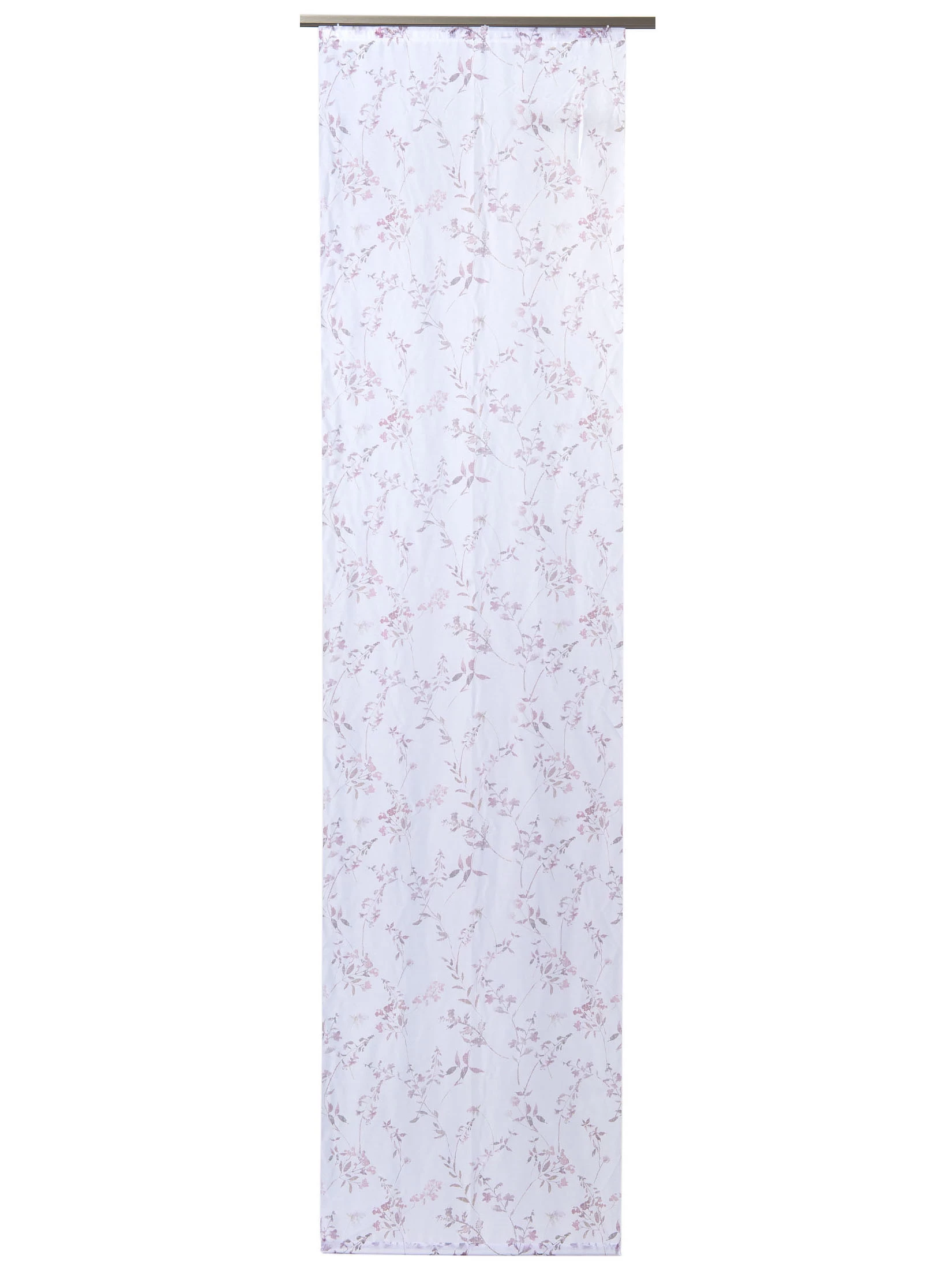 Transparenter Flächenvorhang in floraler Dessinierung. Aus 100 % Polyester.