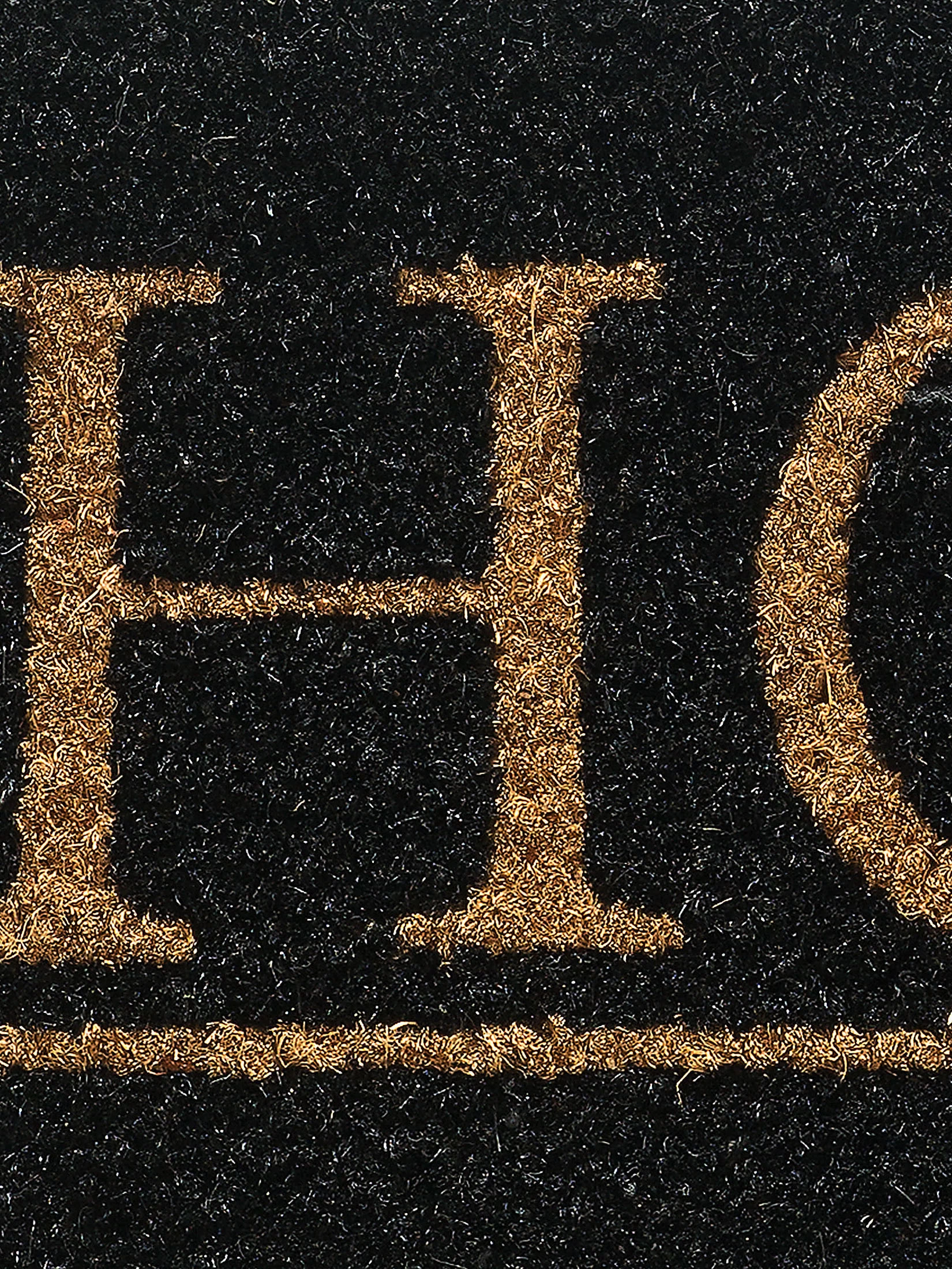 Klassisch beschriftete Kokos-Fußmatte in einem besonderen Format.