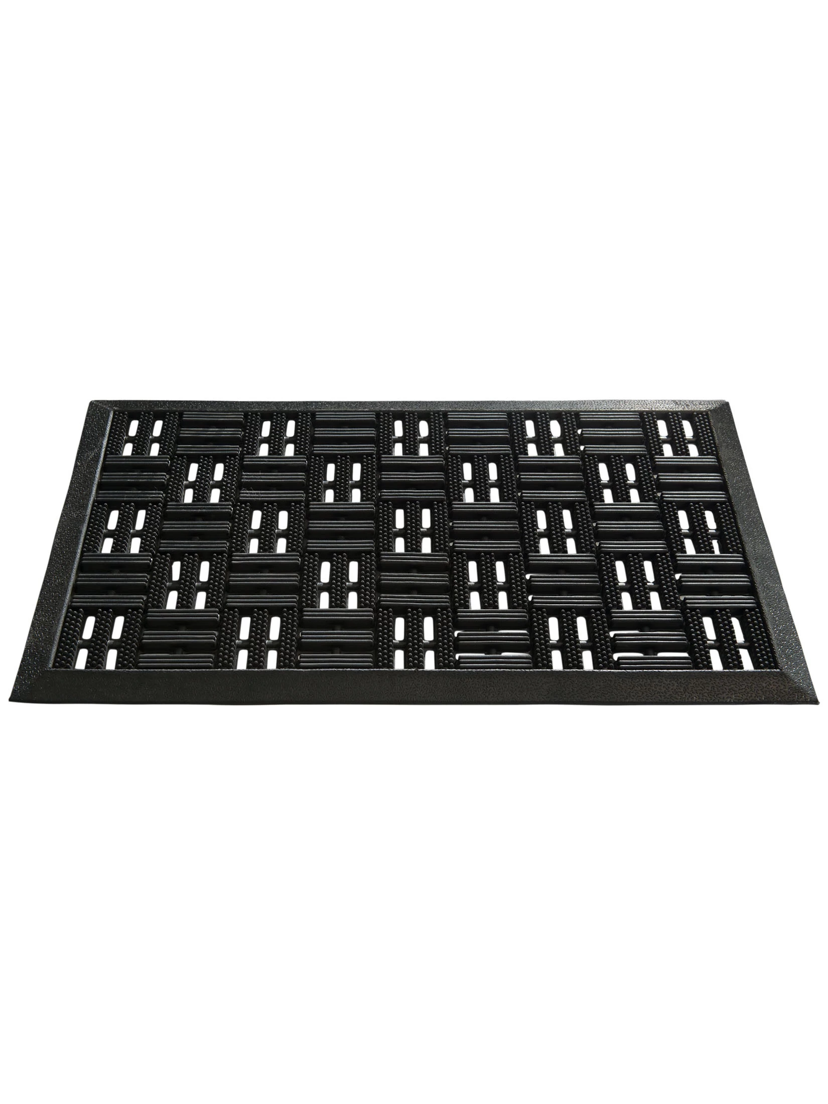 Sehr robuste Hartgummimatte mit Profilen, die tief in die Sohle greifen. Ideal für den Außenbereich – denn ob Schmutz oder Nässe – diese Matte nimmt beides gelassen.