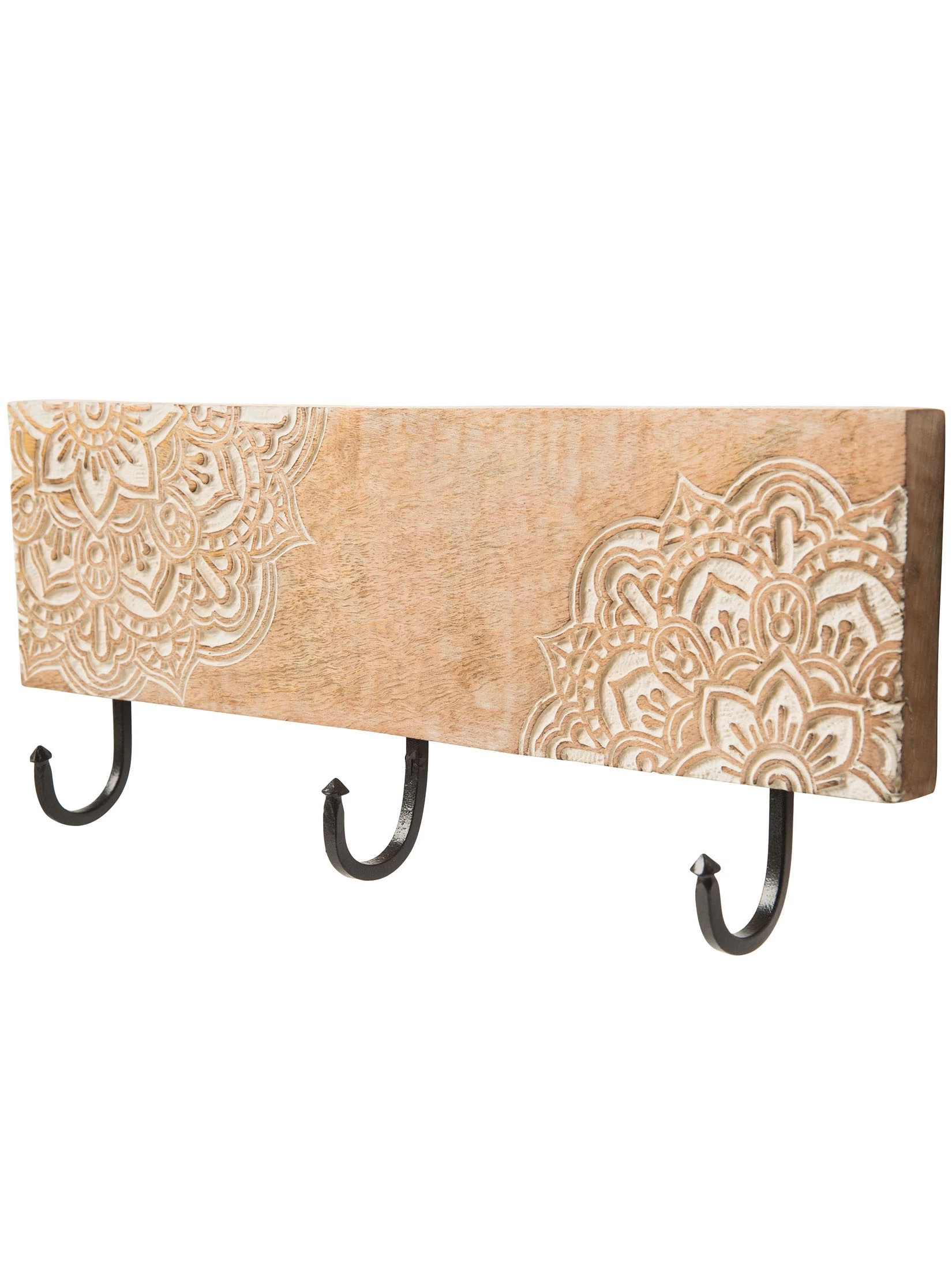 Garderobenhaken mit handgeschnitzten Designelementen. Echtholz.