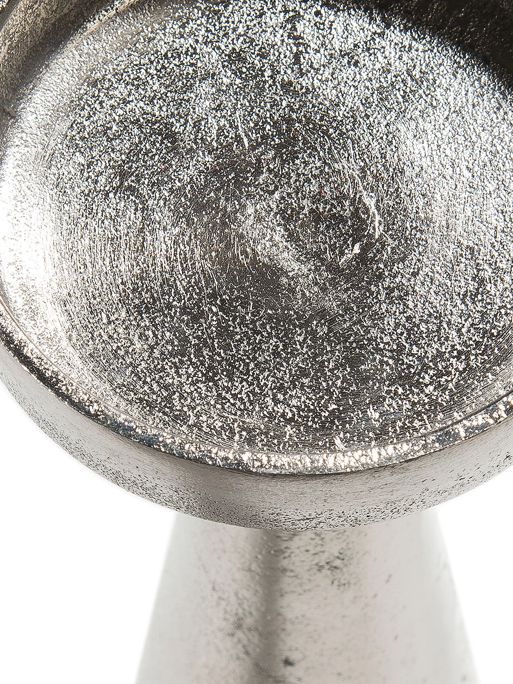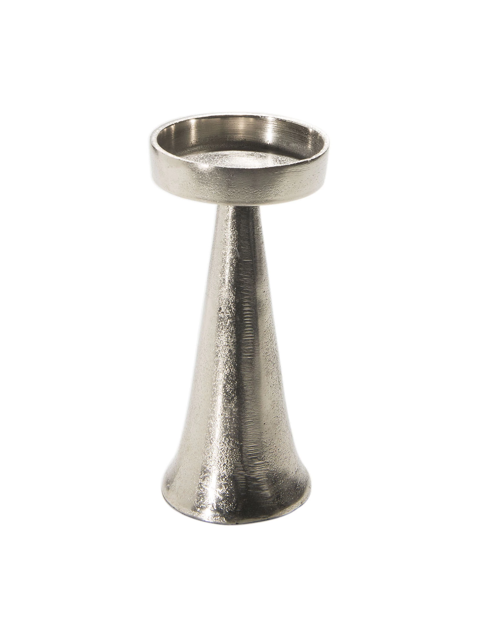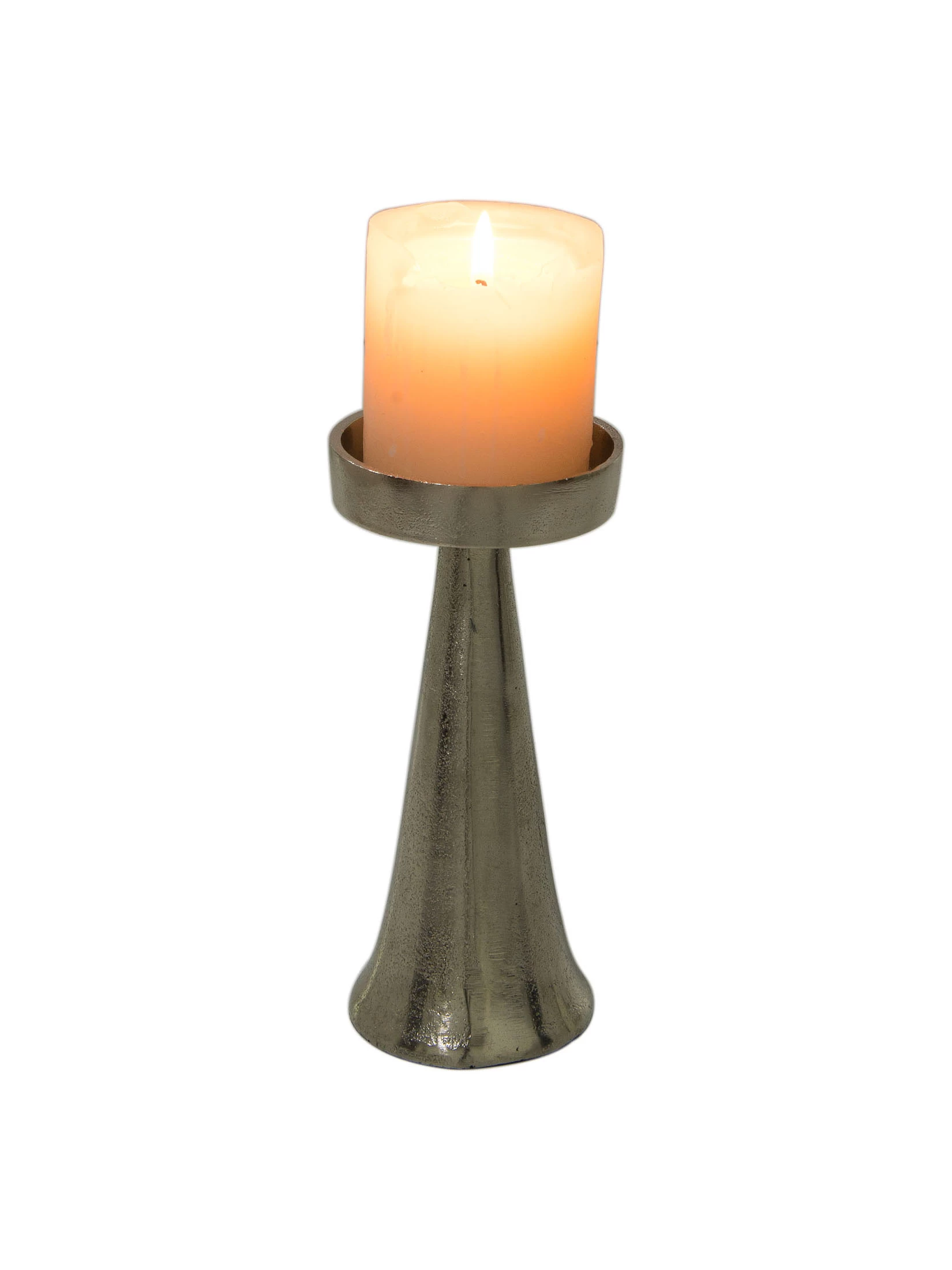 Edle und schlichte Kerzenleuchter fĂĽr Stumpenkerzen, gut geeignet fĂĽr die geschmackvolle Tischdekoration. Aus Aluminium gefertigt.