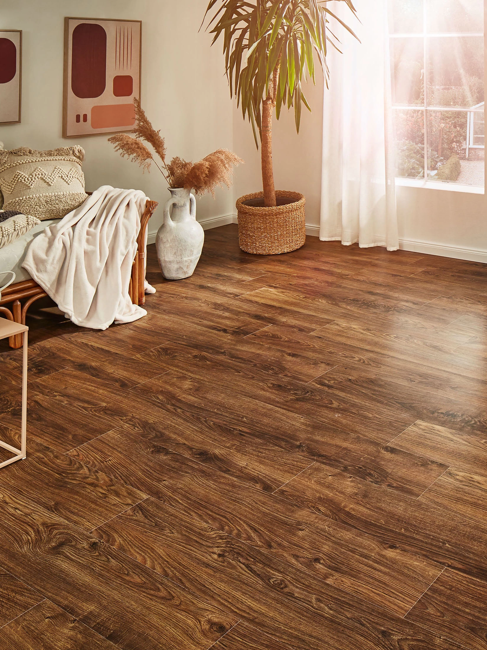 Premium-Klicklaminat. Ein sehr dekorativer und besonders natürlich wirkender Laminatboden. Die Besonderheit, die diesen Boden von anderen Laminatböden abheben lässt, ist seine geprägte Oberfläche, die das Laminat noch naturgetreuer aussehen und wirken lässt, fast wie echter Holzboden. Außerdem ist der Boden besonders kräftig mit ca. 8 mm Stärke und für den Einsatz in Räumen mit starker Nutzung hervorragend geeignet. Er hat die Nutzungsklasse 32. Die patentierte Klickverbindung erlaubt zudem eine schnelle und einfache Verlegung – ganz ohne Leim. In vielen trendigen Dekoren für Sie vorrätig.
