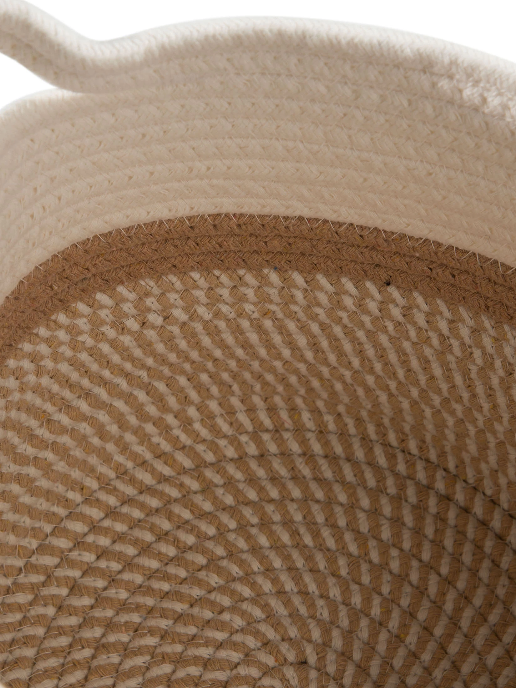 Zylindrischer Korb aus Baumwollkordel gefertigt. Mit praktischen Henkeln.