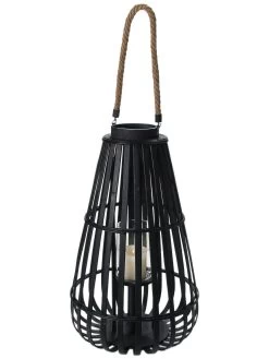 Elegante Bambus-Laterne in stilischem schwarz. Mit Henkel und Glaseinsatz.