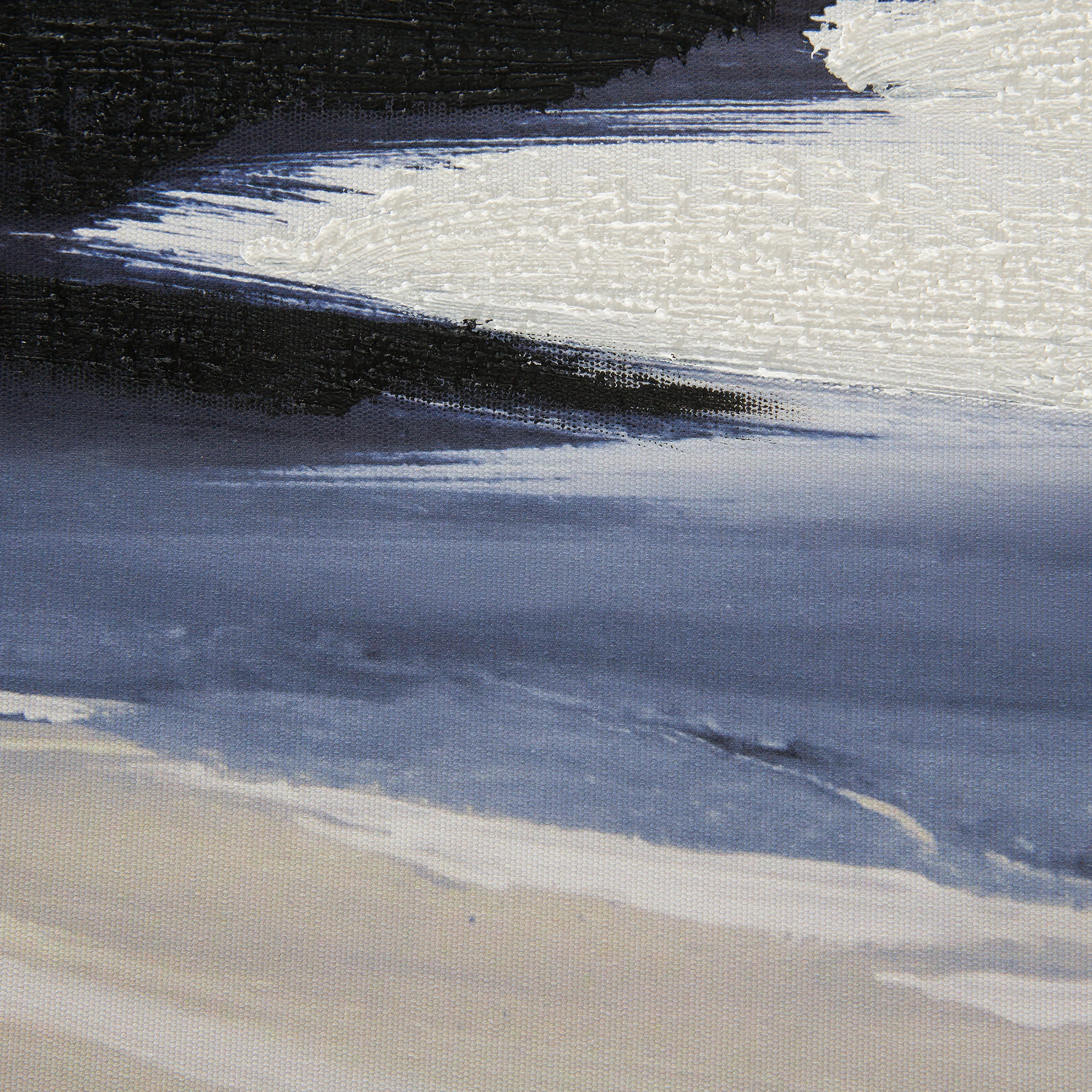 Windumtoste Strandszene wie von Hand gemalt. Um diesen Eindruck zu erzeugen, wurde der Druck teilweise von Hand übermalt. Fertig gerahmt und mit Aufhängung versehen.