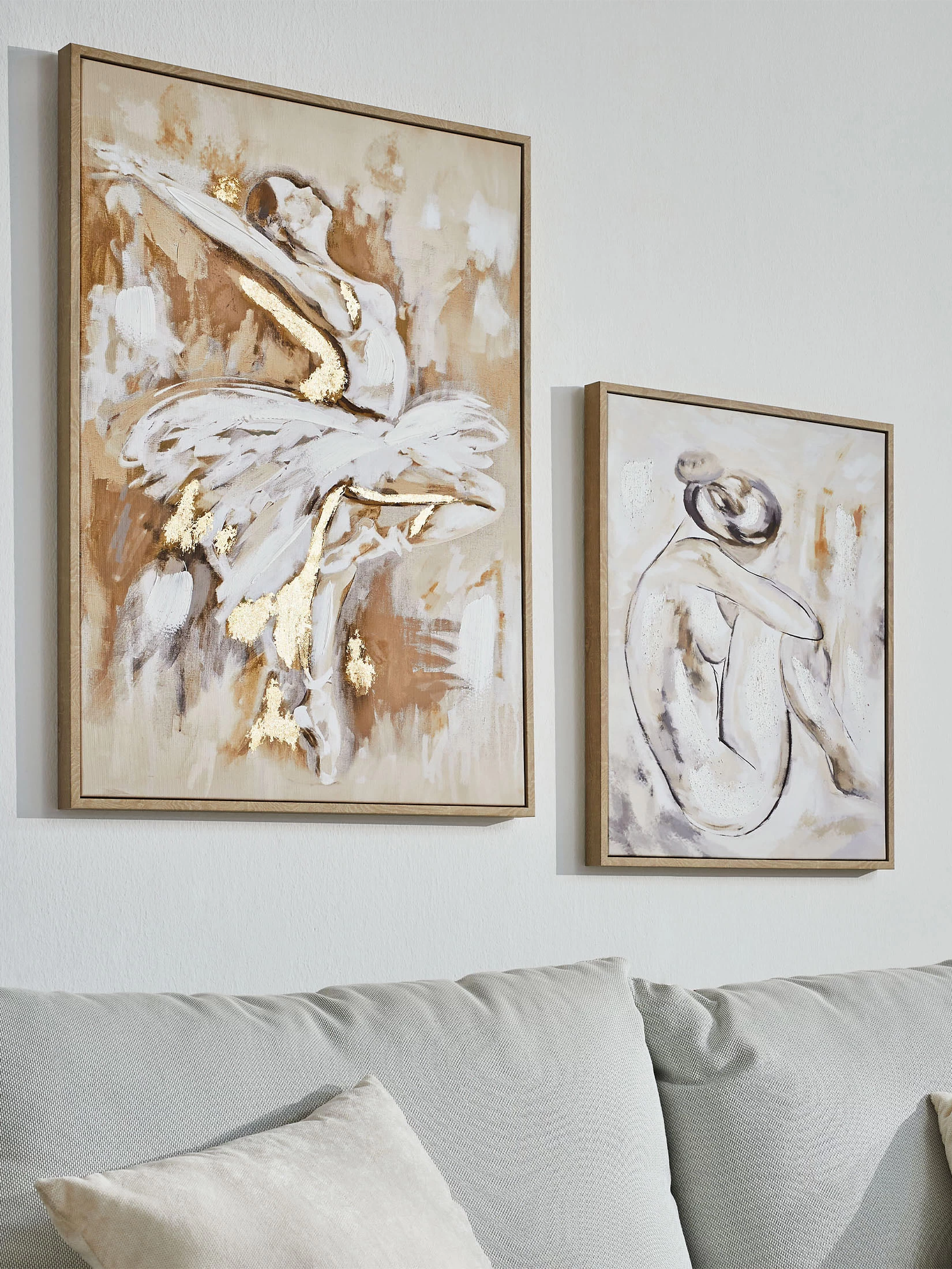 Wie eine Aktstudie direkt aus dem Atelier. Giclée mit naturfarbenem MDF-Rahmen (ca. 3 cm hoch). Der hochwertige Druck wurde per Hand übermalt um die Optik eines Originals zu unterstützen. Inklusive Aufhänger. Ca. 40 x 50 cm.