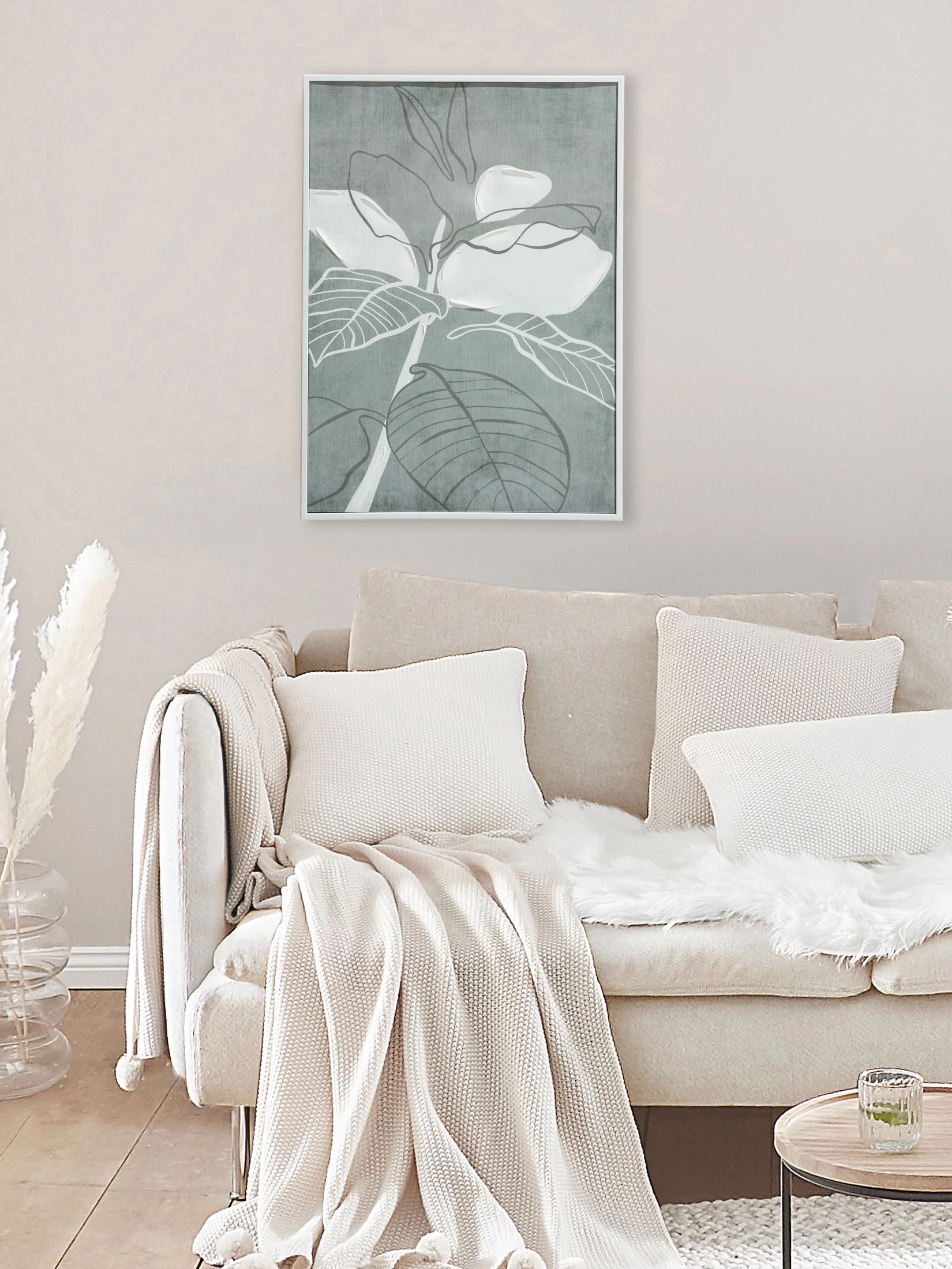 Gerahmter Druck in aktueller Farbgebung – passend zum Nordic Living Trend. Teilweise handgemalt. Inklusive montierter Aufhängung. Ca. 3 cm stark.