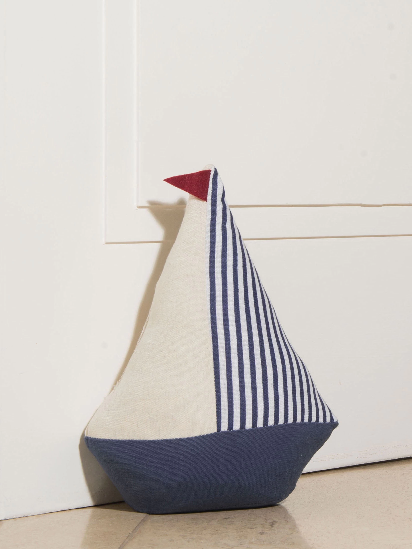 Der Türstopper BOAT STOP findet in vielen Räumen seinen Platz: wie wäre es z.B. im Kinderzimmer oder im maritimen Bad? Ca. 1 kg schwer. Textil mit Sand gefüllt.