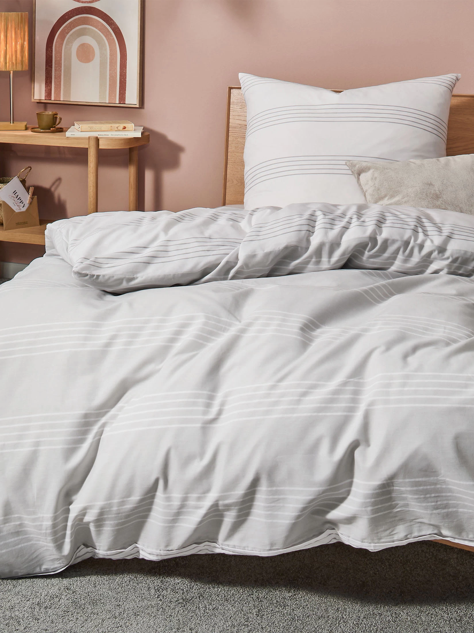 Ob es heiße Sommernächte oder kalte Regentage sind – die besonders angeschmiegsame Baumwolle ist für das ganze Jahr geeignet und wirkt temperaturausgleichend. Mit Qualitäts-Reißverschluss. Oeko-Tex Standard 100. Material 100 % Renforcé-Baumwolle. Wendebettwäsche.