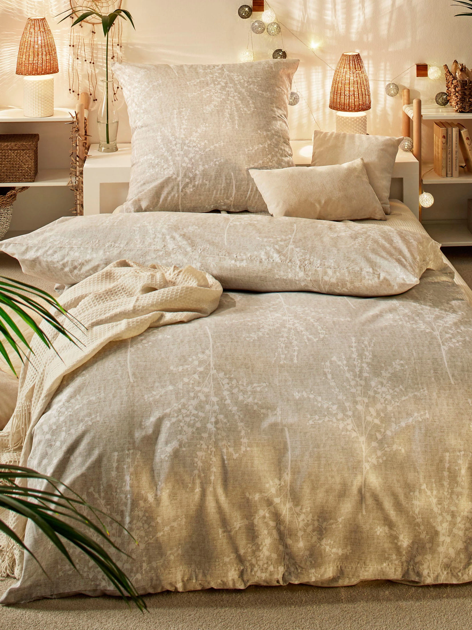 Wer in die nächtliche Stille eintauchen will, bettet sich stilsicher in diese Renforcé-Bettwäsche. Natural Field, aus reiner Baumwolle, ist äußerst geschmeidig und atmungsaktiv. Waschbar bis 60 °C. Mit Qualitäts-Reißverschluss.