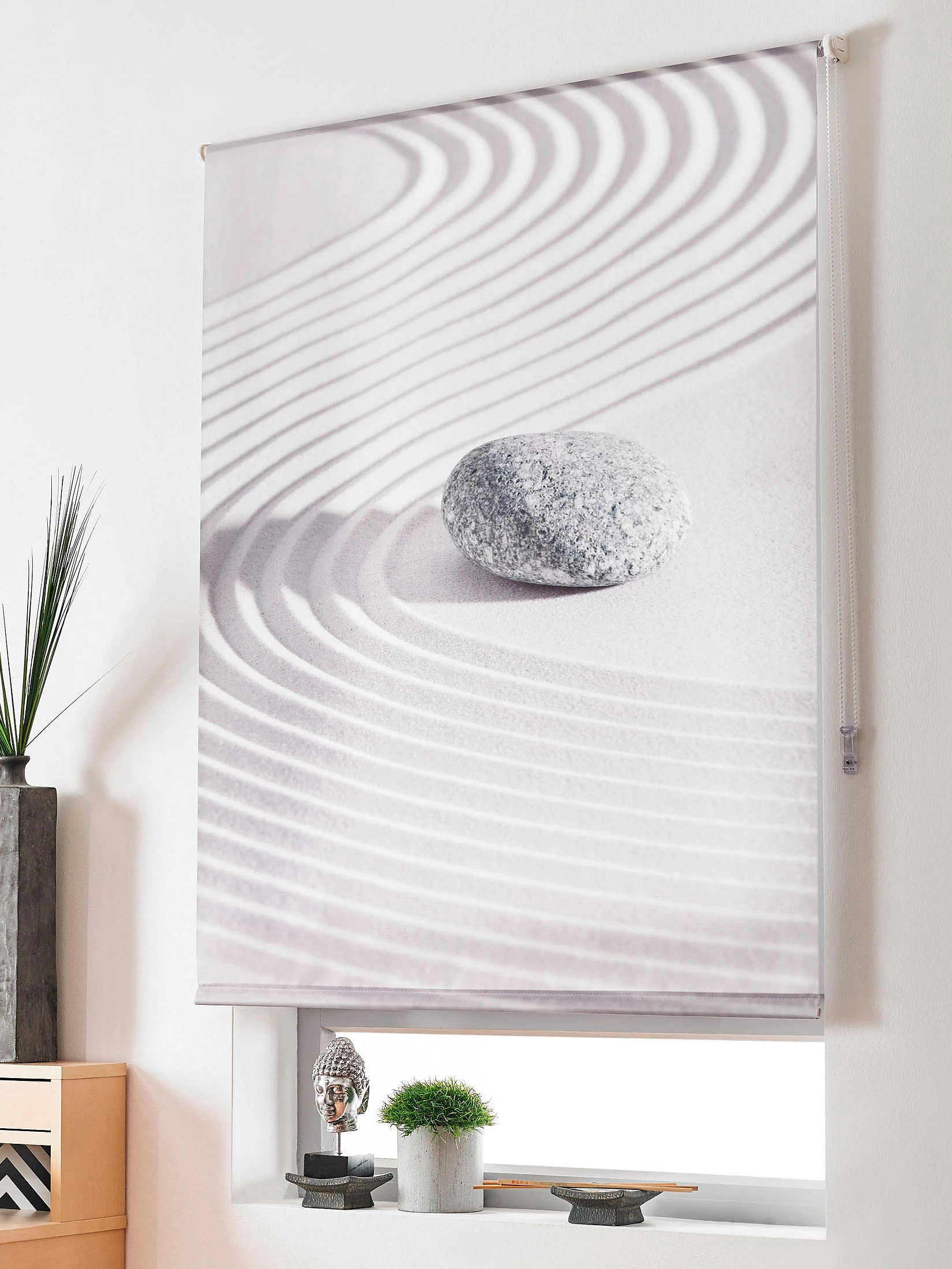 Tristesse adé. Aktuelle Designs für die individuelle Fenster- und Raumgestaltung. Eine spezielle Digitaldrucktechnik bringt die Motive fotorealistisch auf das DIGITAL ROLLO – mit feinen Details und brillanten Farben. Aus 100 % Polyester, lichtecht. Mit seitlichem Kettenzug, inkl. Montageset.