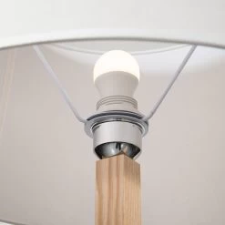 Stehleuchte im Skandi-Stil. Ständer aus Eschenholz und Lampenschirm aus Leinen gefertigt. Excl. Leuchtmittel E27 60W. Höhe ca. 160 cm.
