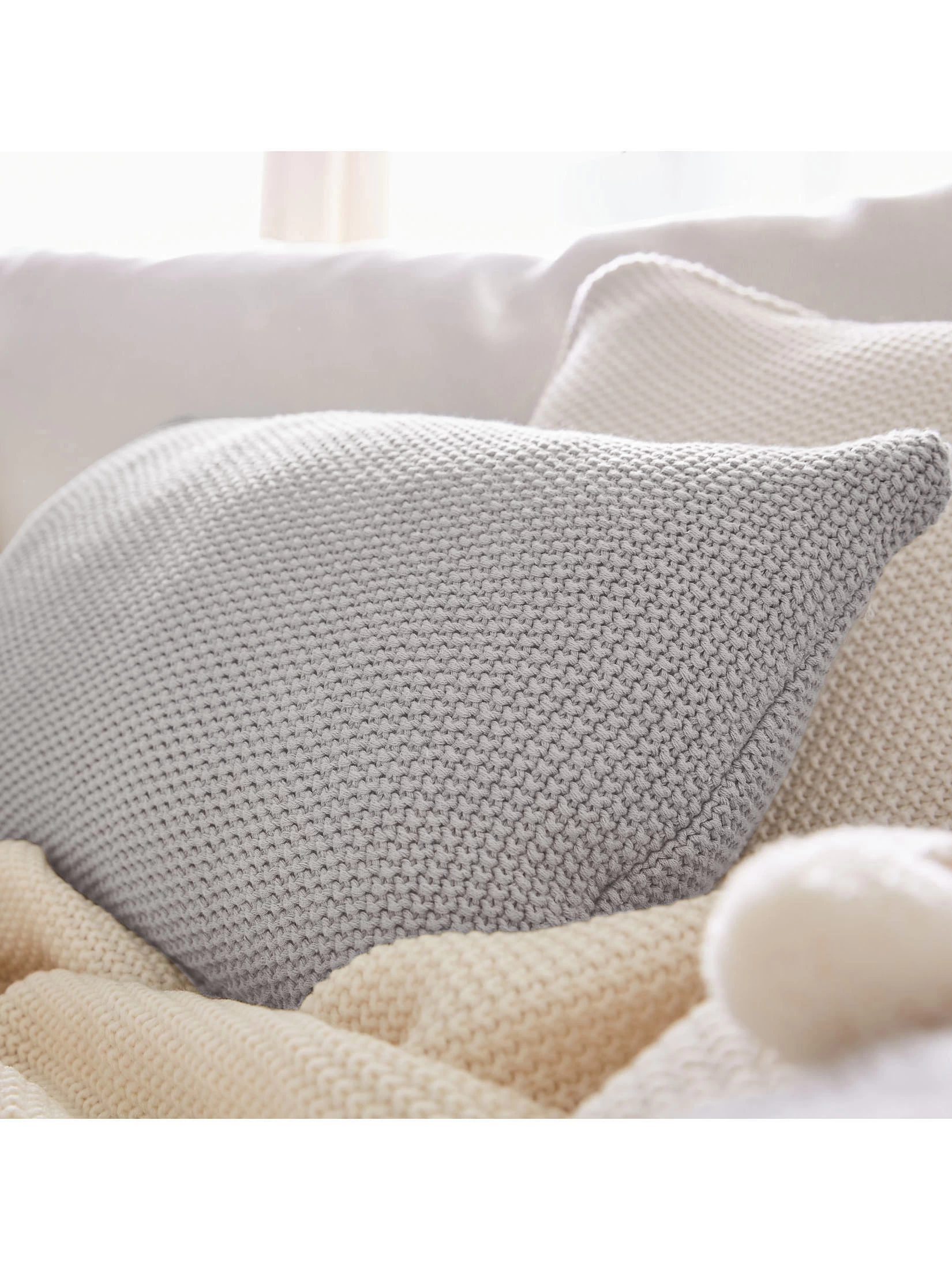 Erst eine Kissenschlacht wagen – und es sich dann auf dem Sofa gemütlich machen. An HYGGE erfreut man sich zu jeder Gelegenheit. Die prägnante Strickoptik aus 100 % Baumwolle sieht nicht nur gut aus, sondern fühlt sich auch gut an. Ein unempfindliches Kissen mit natürlicher Eleganz, um das Leben zuhause auszukosten. Füllung aus 85 % Polyester, 15 % Polyamid. Mit Reißverschluss.