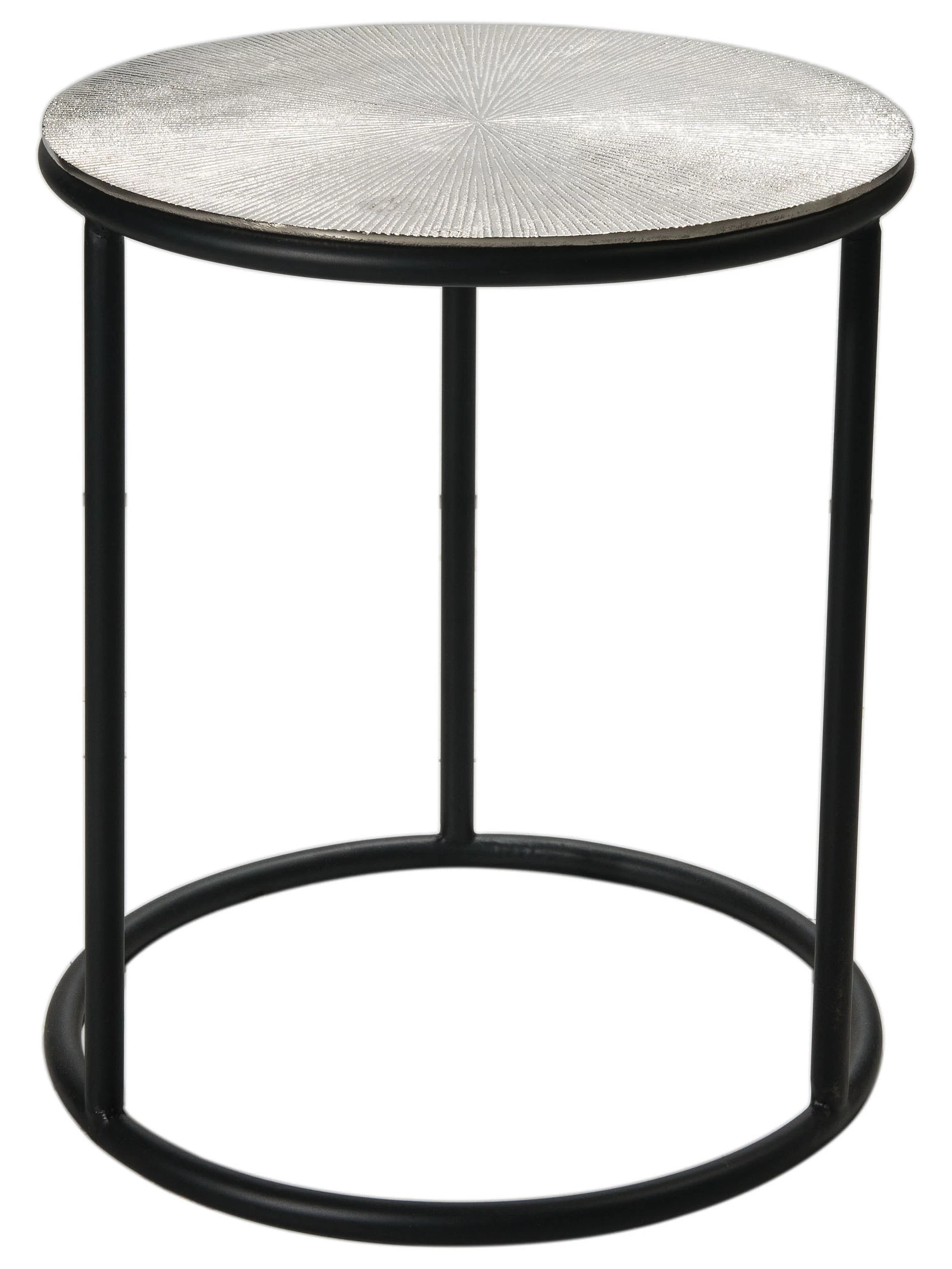 Dekorativer Eisentisch mit gerippter Aluminiumplatte.