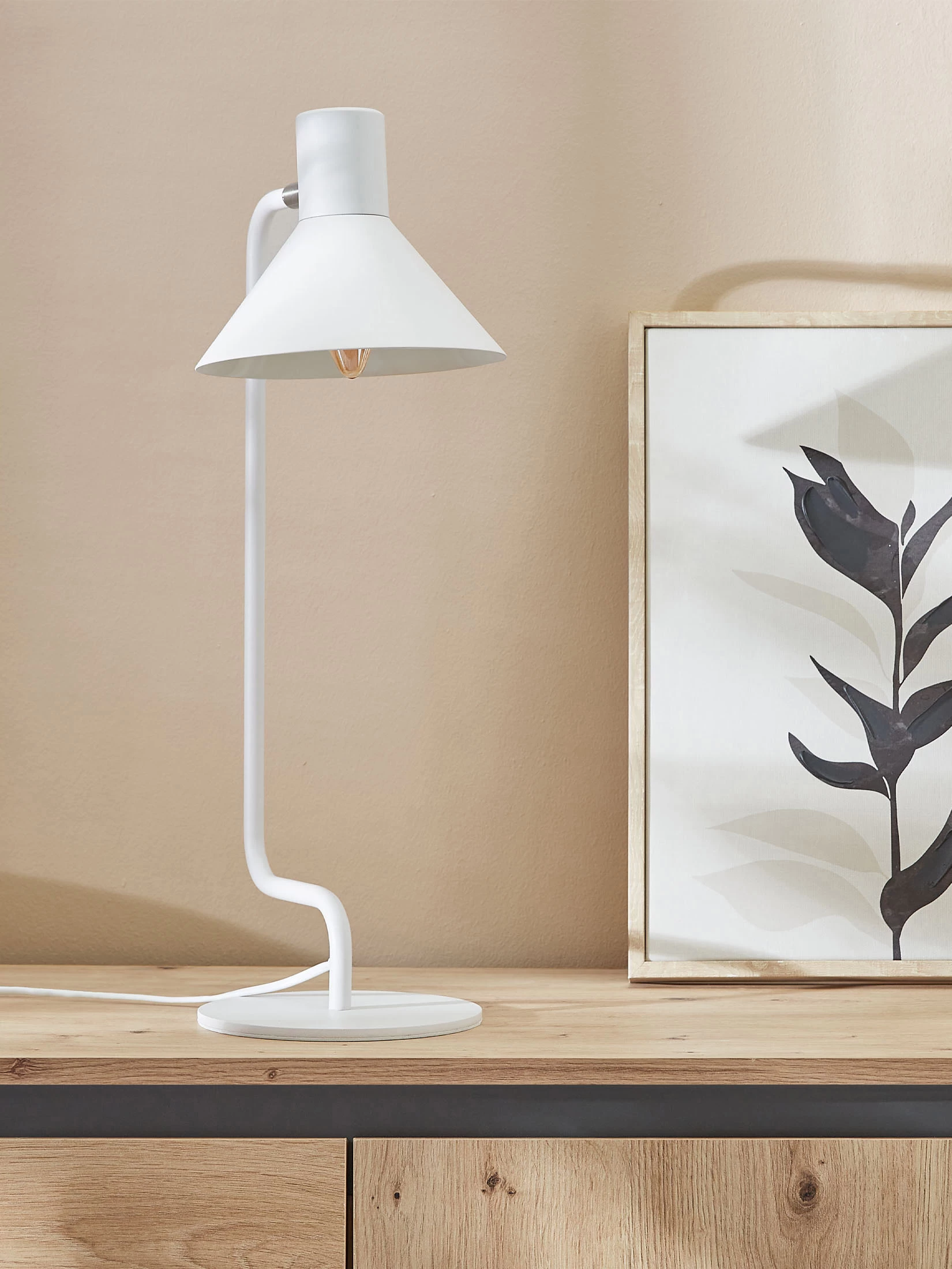 Moderne Tischleuchte aus Metall. Beweglicher Lampenschirm. Exkl. Leuchtmittel E27 25W. Höhe ca. 50 cm.