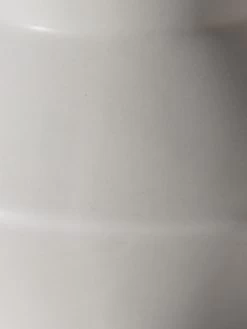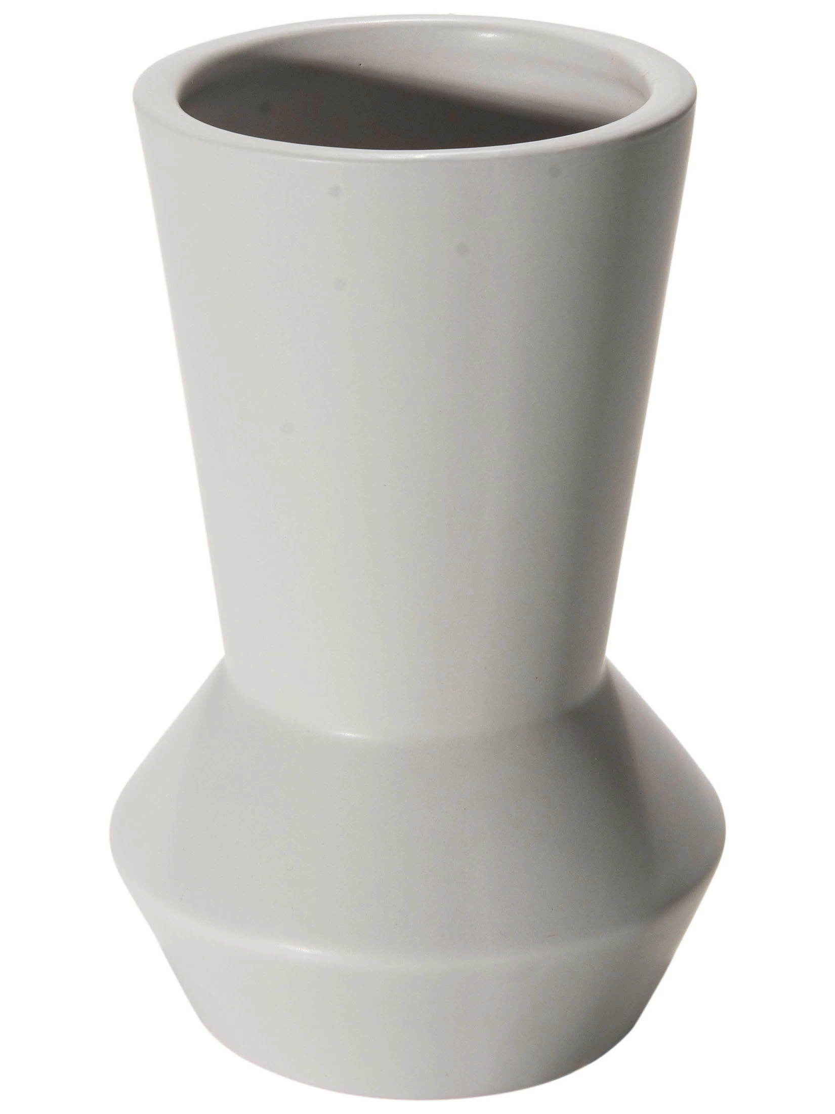 Kleine Keramikvase in dezentem Hellgrau und extravaganter Form.