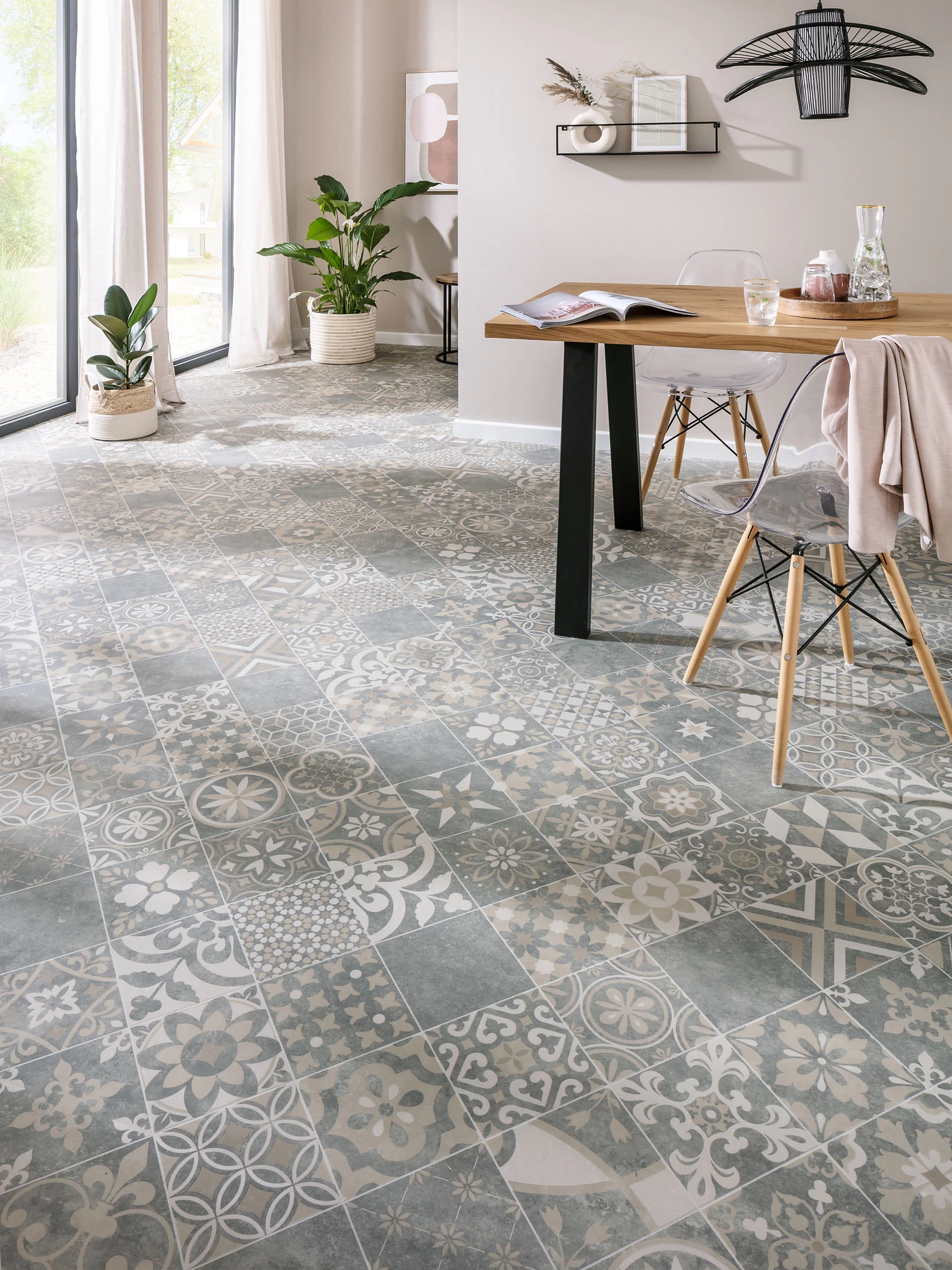 Seine natürliche, authentische Fliesen-Optik verleiht jedem Raum besonderen Flair. Durch seine Oberflächenprägung, den Comfort-Vliesrücken sowie extremer Verschleiss- und Druckfestigkeit bietet Almeria allergrößten Komfort. 100% recyclebar. Ca. 400 cm breit.