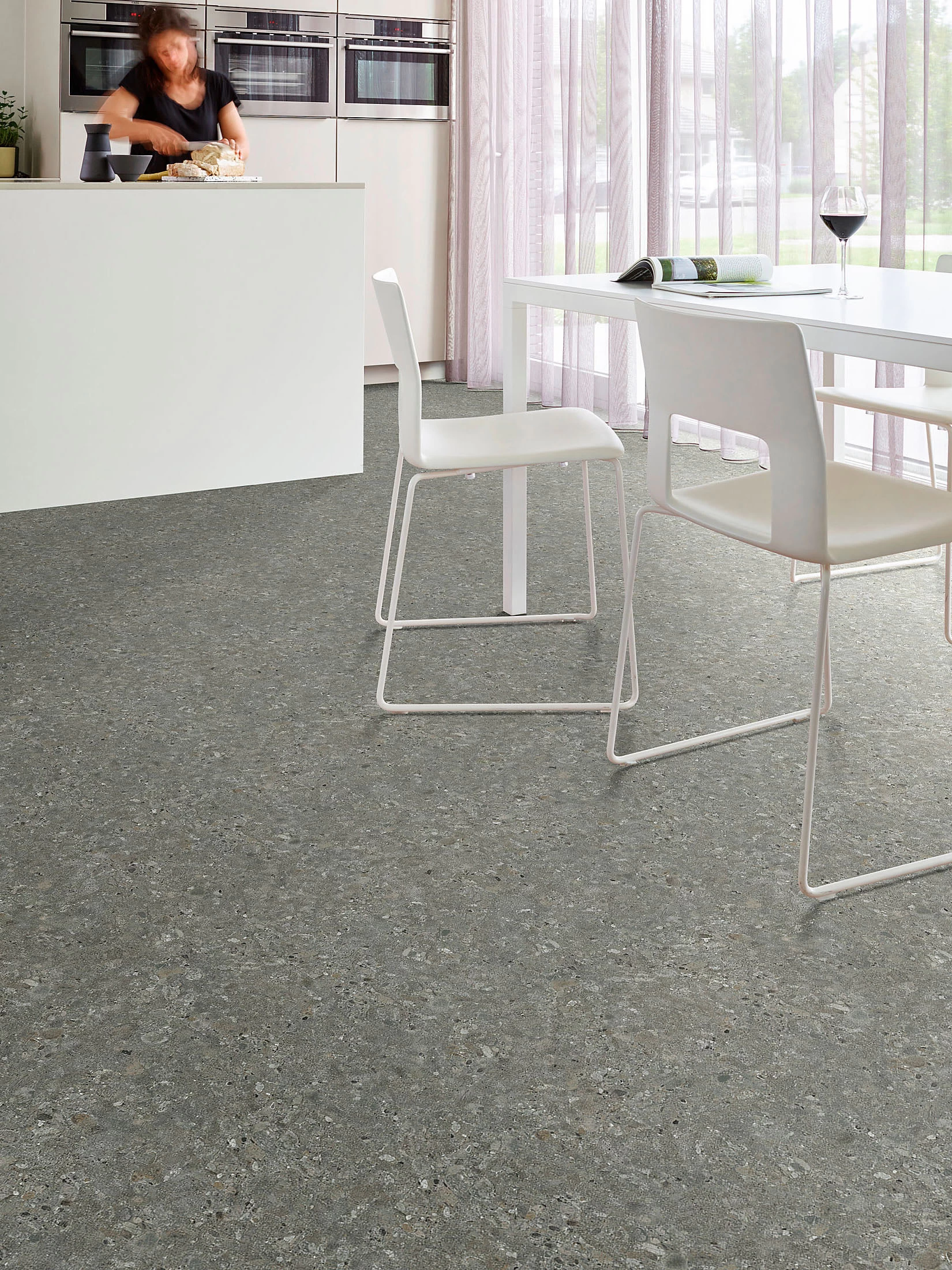 Beton, Zement und Estrich-Minimalismus am Boden sorgen für einen modern interpretierten Retro-Look. Der Vinylboden MURCIA hat eine verstärkte Zwischenschicht. Er besitzt eine hohe Verschleiß- und Druckfestigkeit. MURCIA ist pflegeleicht und einfach zu reinigen. Die zeitgemäßen industriellen Designs überzeugen. 100 % recycelbar und Phtalatfrei.