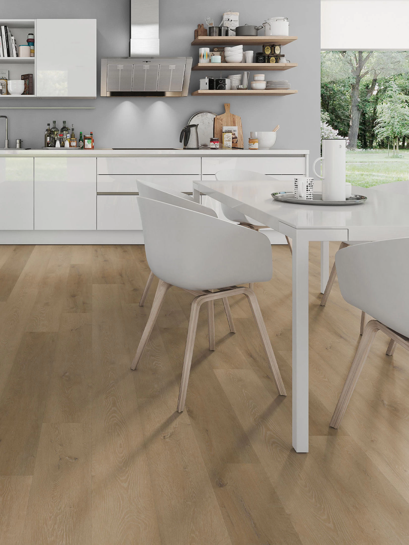 Der ultimative Trend-Belag. Profi-Design-Bodenbelag zur vollflächigen Verklebung mit sehr geringer Aufbauhöhe. Extrem belastbar. Ceramic-PU-Beschichtung. Hohe Nutzschicht von 0,55 mm. Ideal für Küche und Bad einsetzbar. 25 Jahre Garantie im Wohnbereich und 10 Jahre Garantie im Arbeitsbereich. Maße ca. 18 x 122 cm.