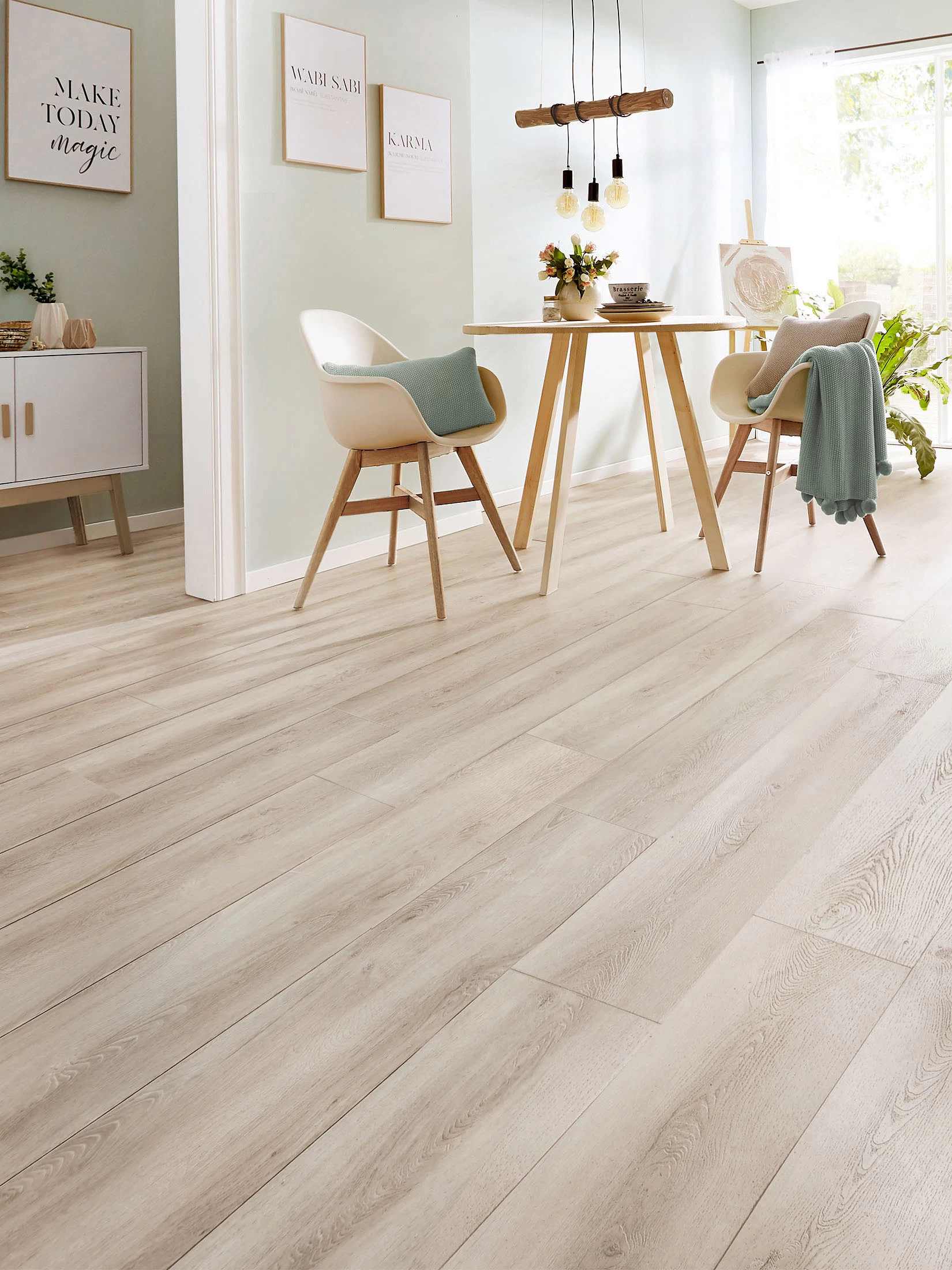 Die geprägte und rutschhemmende Oberfläche bildet perfekt die Holzstruktur ab und verleiht dem Boden die natürliche Note und ist fast nicht vom Echtholzboden zu unterscheiden. Die geringe Gesamtstärke von nur ca. 4,5 mm und der Träger aus wasserfestem Material ermöglichen ein sehr breites Einsatzspektrum dieses Bodens. Zudem ist die Oberfläche mit ihrer ca. 0,55 mm Nutzschicht besonders strapazierfähig und belastbar. Durch die innovative Klickvariante ist eine Verlegung sehr einfach. Maße ca. 1220/229/4,5 mm.