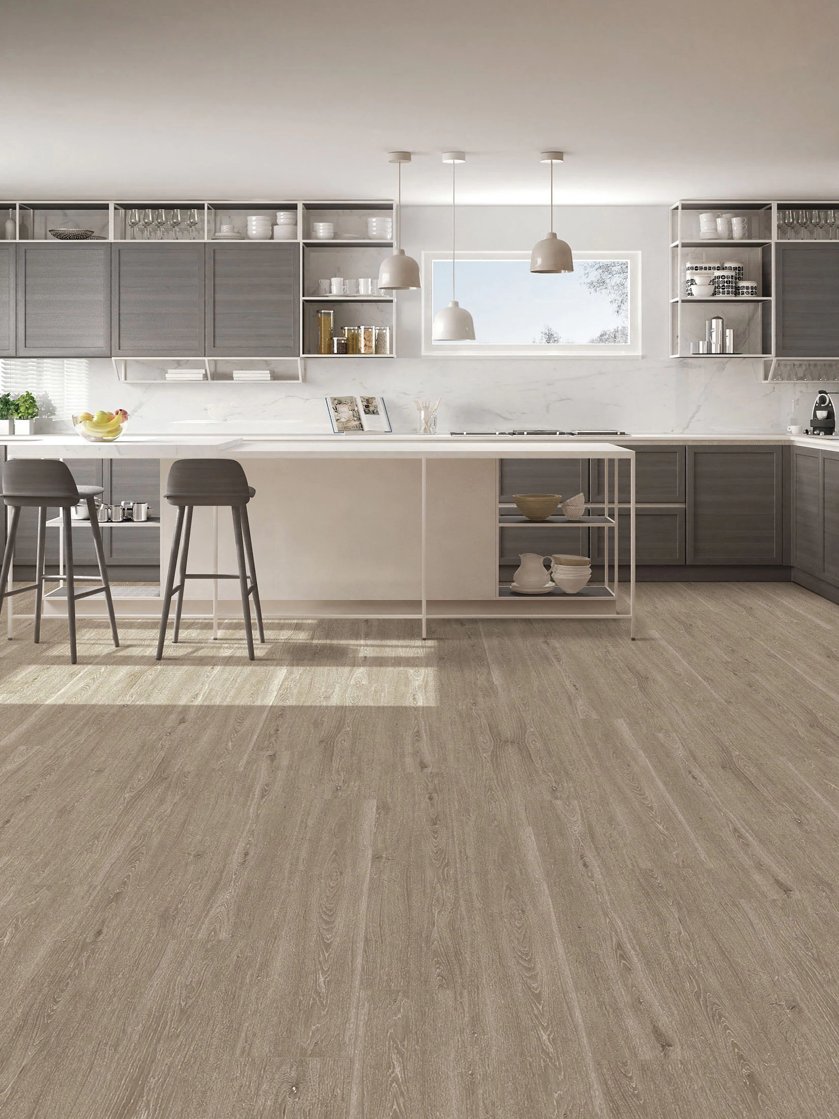 Die geprägte und rutschhemmende Oberfläche bildet perfekt die Holzstruktur ab und verleiht dem Boden die natürliche Note und ist fast nicht vom Echtholzboden zu unterscheiden. Die geringe Gesamtstärke von nur ca. 4,5 mm und der Träger aus wasserfestem Material ermöglichen ein sehr breites Einsatzspektrum dieses Bodens. Zudem ist die Oberfläche mit ihrer ca. 0,55 mm Nutzschicht besonders strapazierfähig und belastbar. Durch die innovative Klickvariante ist eine Verlegung sehr einfach. Maße ca. 1220/229/4,5 mm.