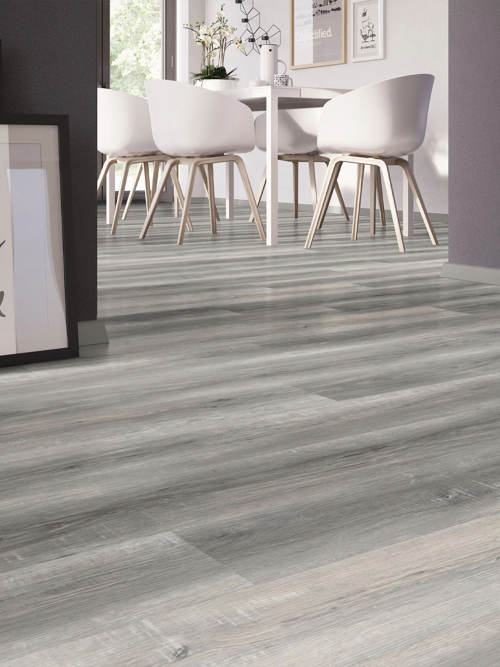 Extra flacher Design-Bodenbelag zur vollflächigen Verklebung. Extrem belastbar und pflegeleicht. Auch für den Nassbereich geeignet. Sehr geringe Aufbauhöhe. Authentische Prägung. Maße ca. 1219,2 x 185 x 2 mm mit einer Nutzschicht von ca. 0,3 mm.