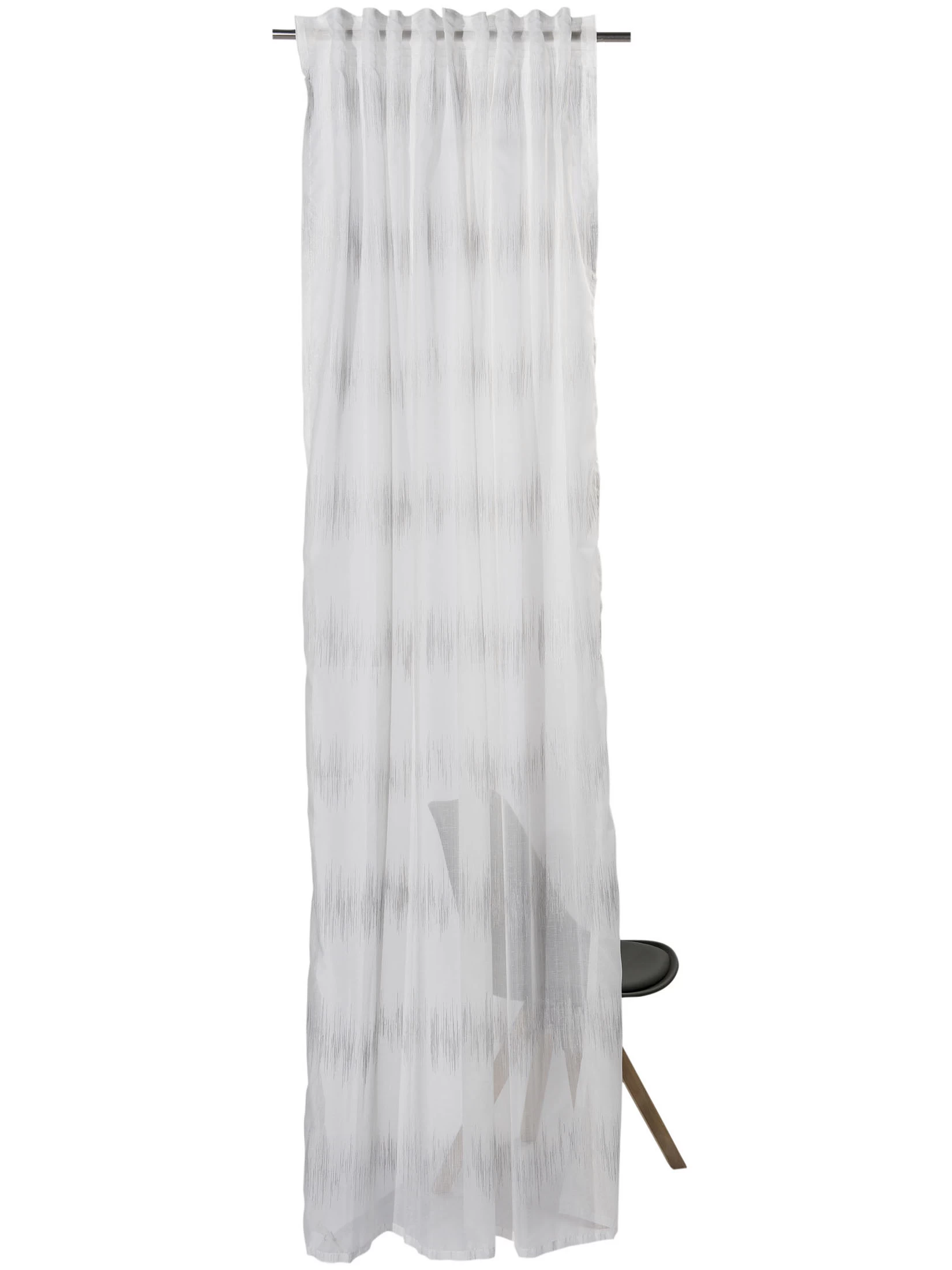 Vorhang mit verdeckter Schlaufe. Für Stange und Schiene geeignet. Garngefärbt. Oeko-Tex Standard 100.