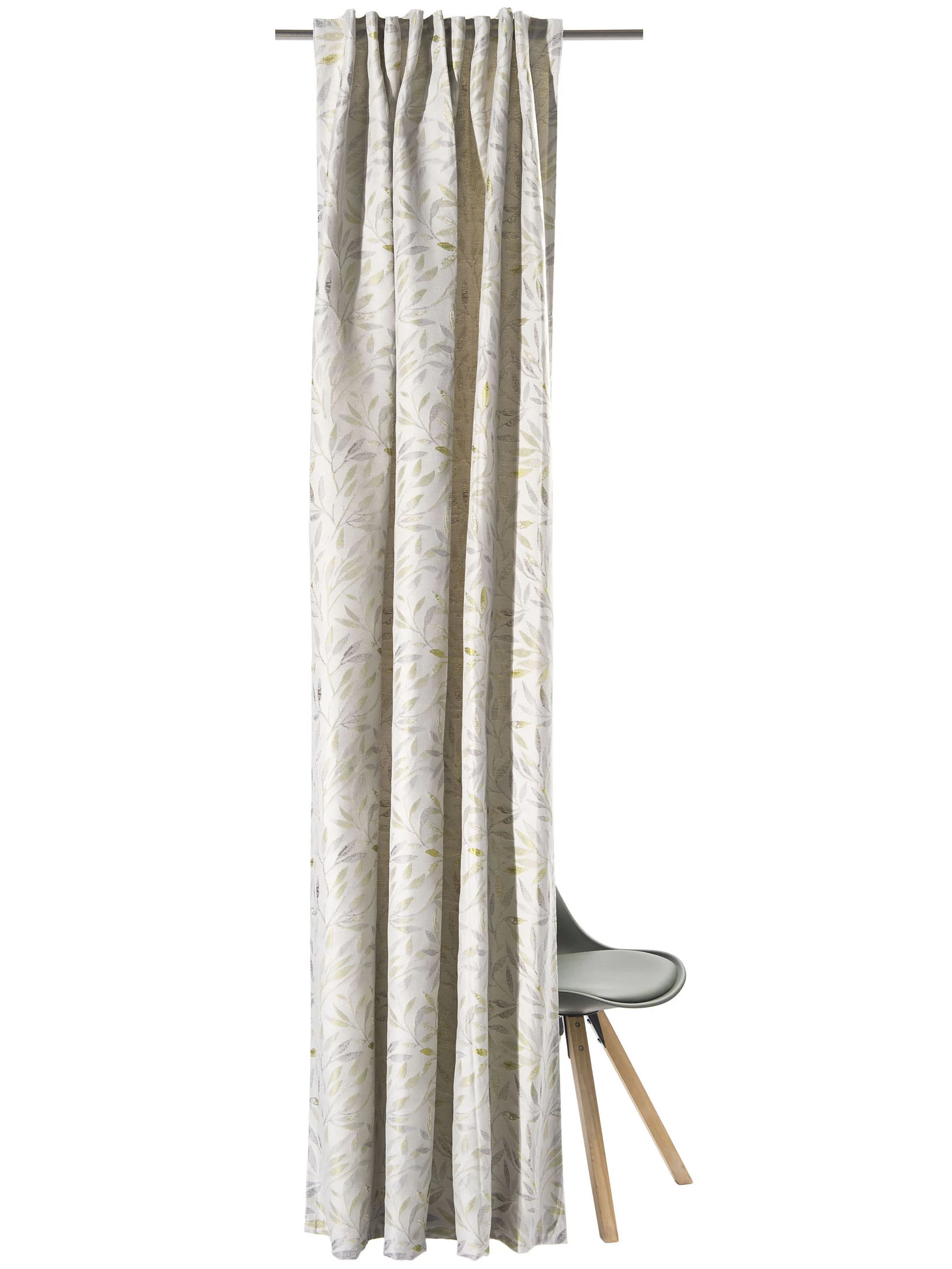 Zieht die Blicke auf sich: der edle Jaquard-Vorhang Luciana. Luxuriös und pflegeleicht. Schwerer Schlaufenschal aus 100 % Polyester. Gardinenband mit verdeckter Schlaufe. Waschbar bis 30°C. Oeko-Tex Standard 100.
