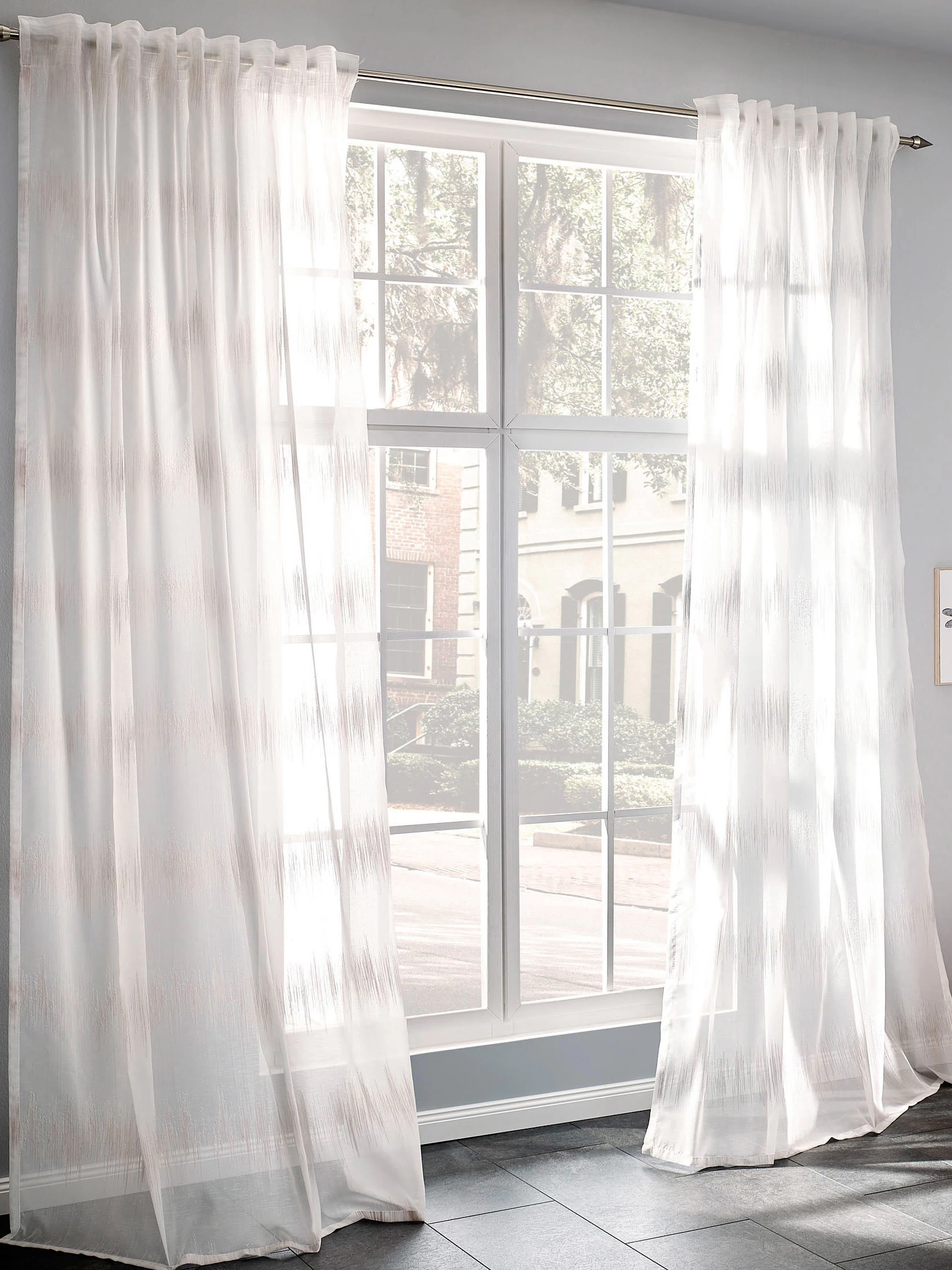 Vorhang mit verdeckter Schlaufe. Für Stange und Schiene geeignet. Garngefärbt. Oeko-Tex Standard 100.