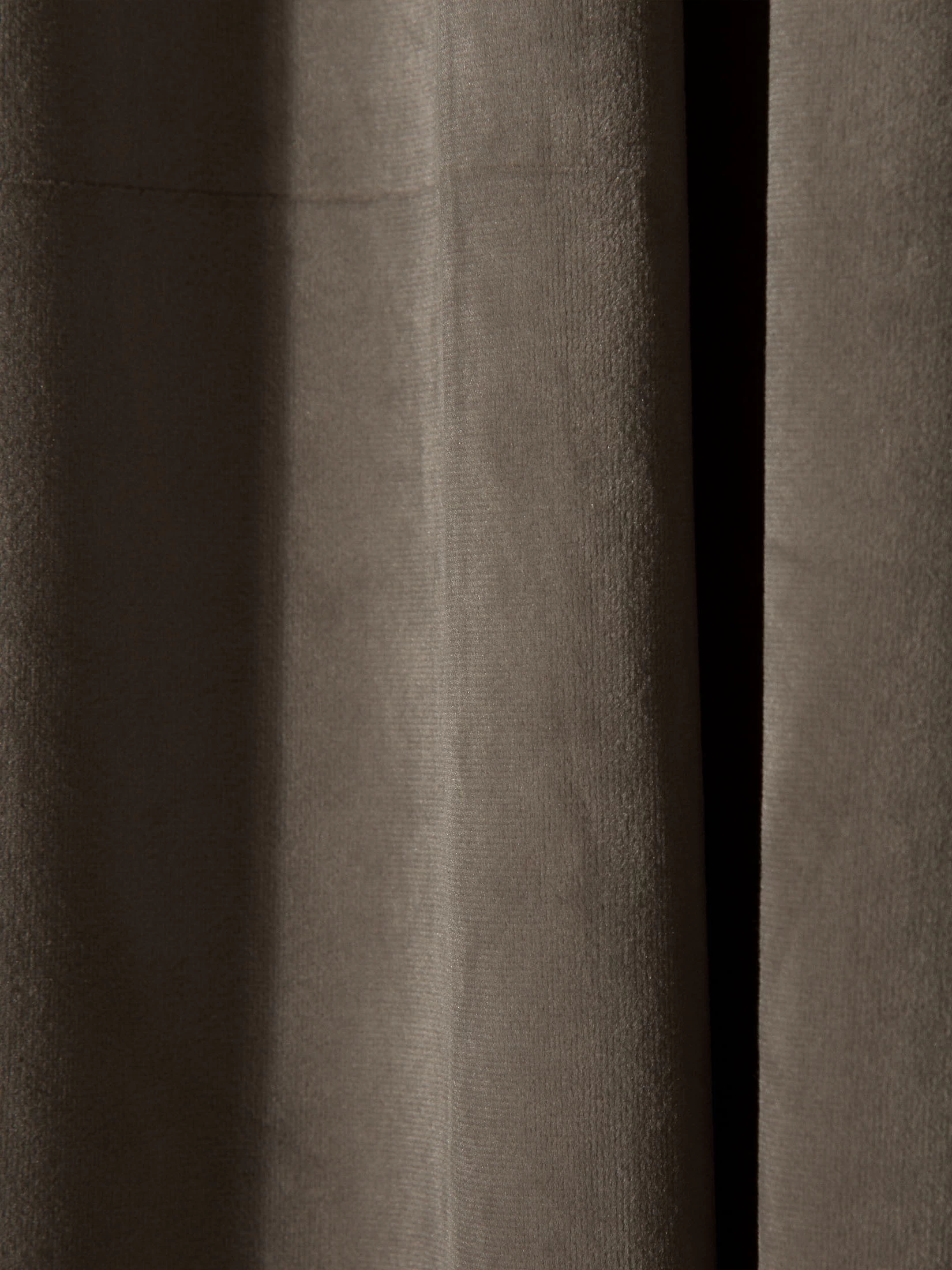 Fertigvorhang aus feinem Samt. Ausgestattet ist dieser blickdichte Vorhang mit verdeckten Schlaufen und einem Kombiband.