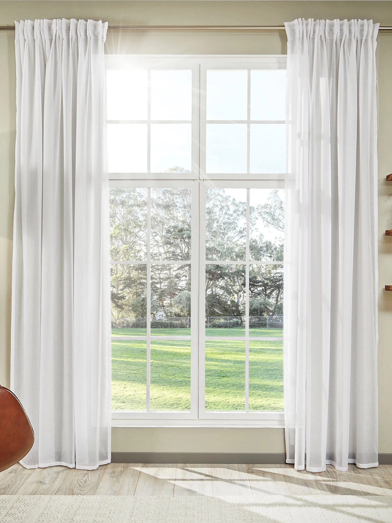 Dicht gewebter Vorhang mit verdeckten Schlaufen. FĂĽr Stange und Schiene geeignet. Fein strukturiert.