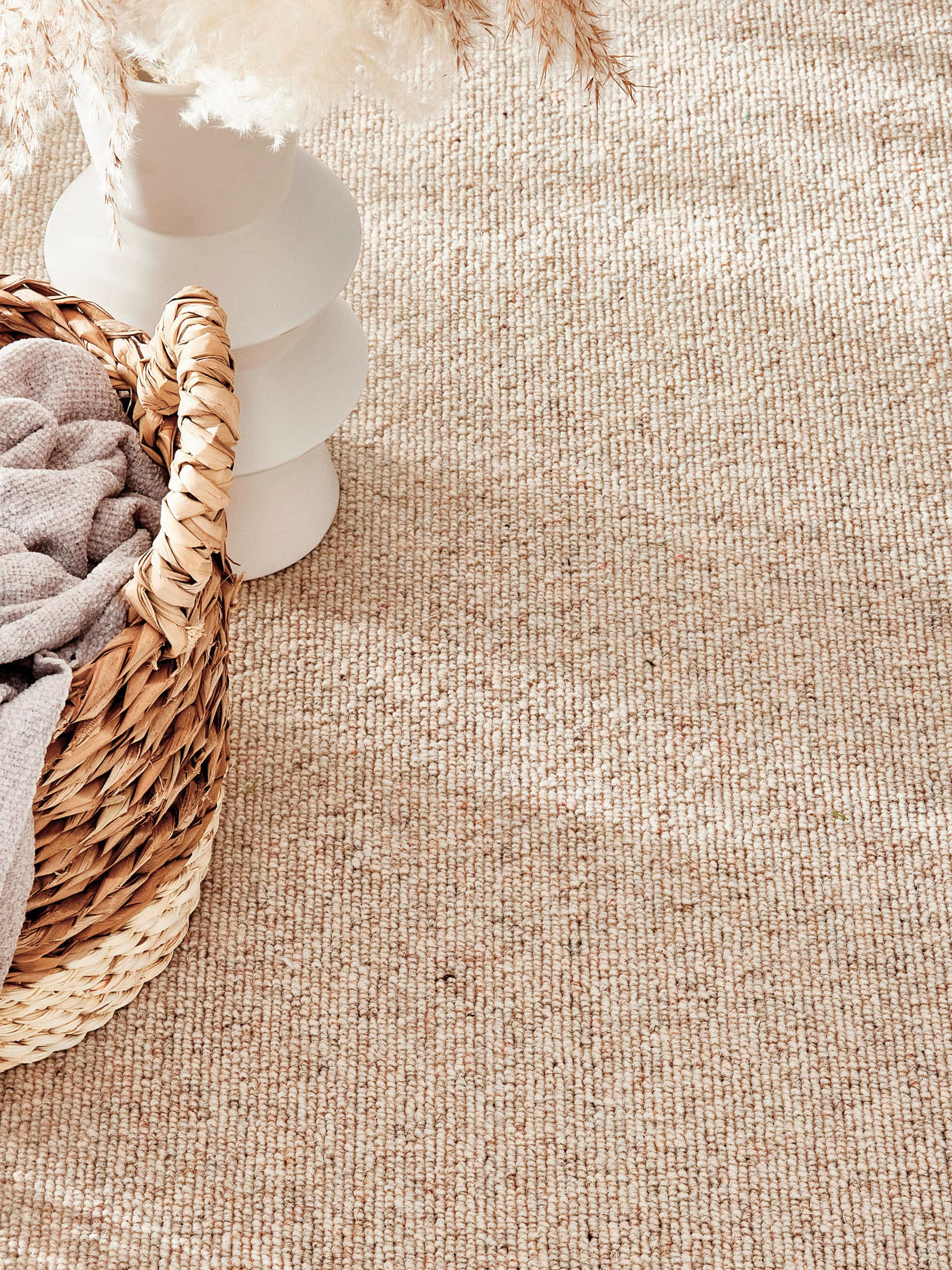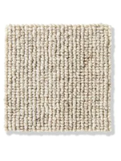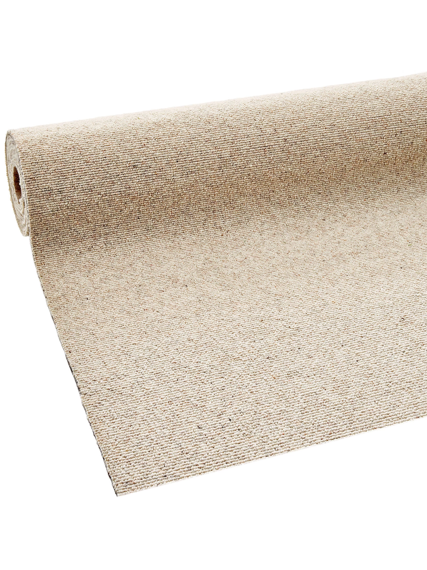 Klassischer, naturfarbener schwerer Woll-Teppichboden mit dezenter Zeichnung. Gesamtgewicht ca. 1670 g pro m². Höhe ca. 7 mm. Flor 100 %